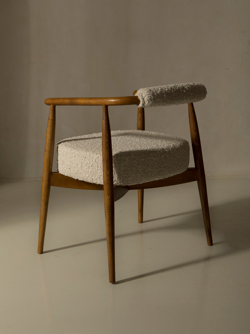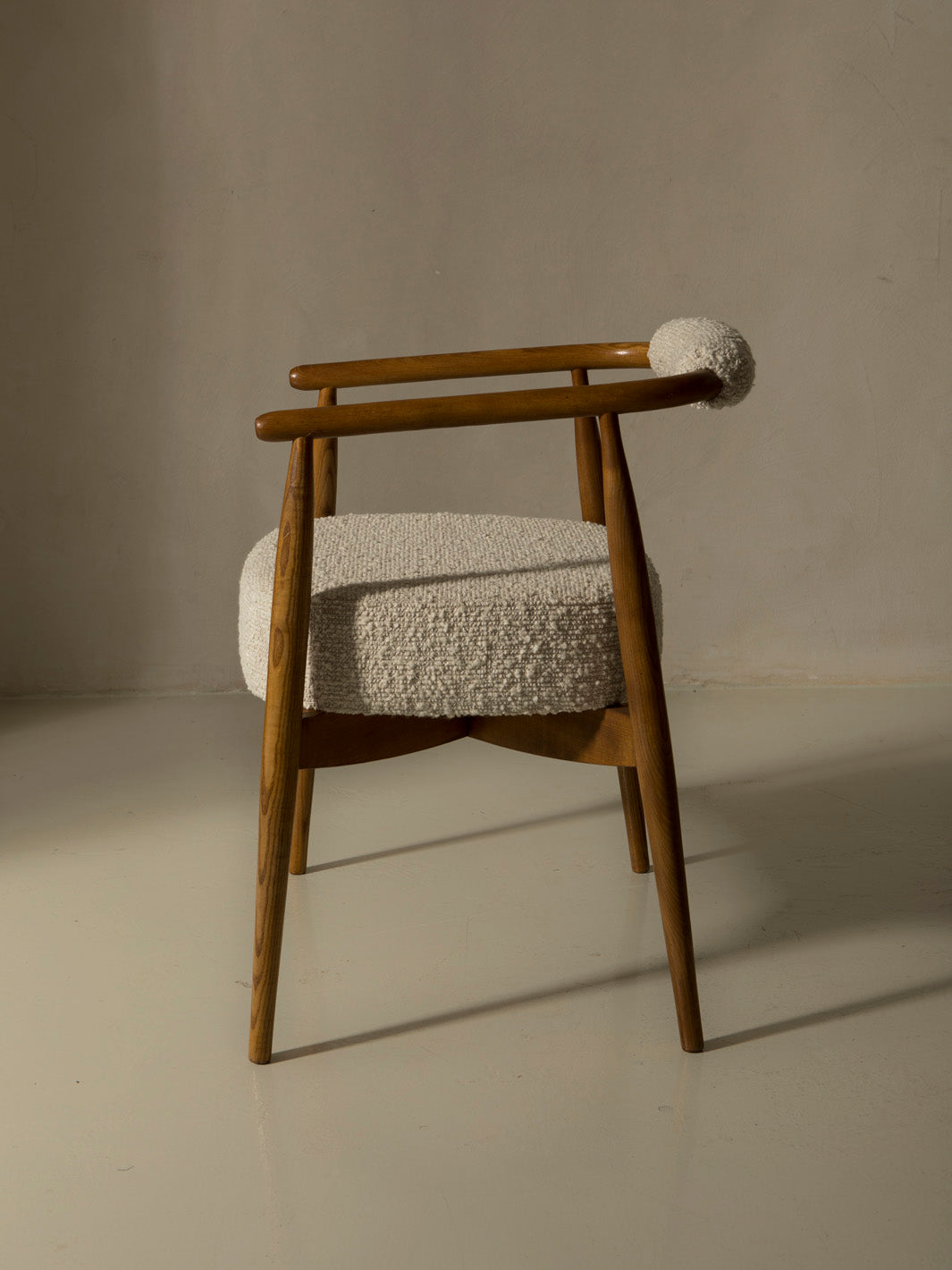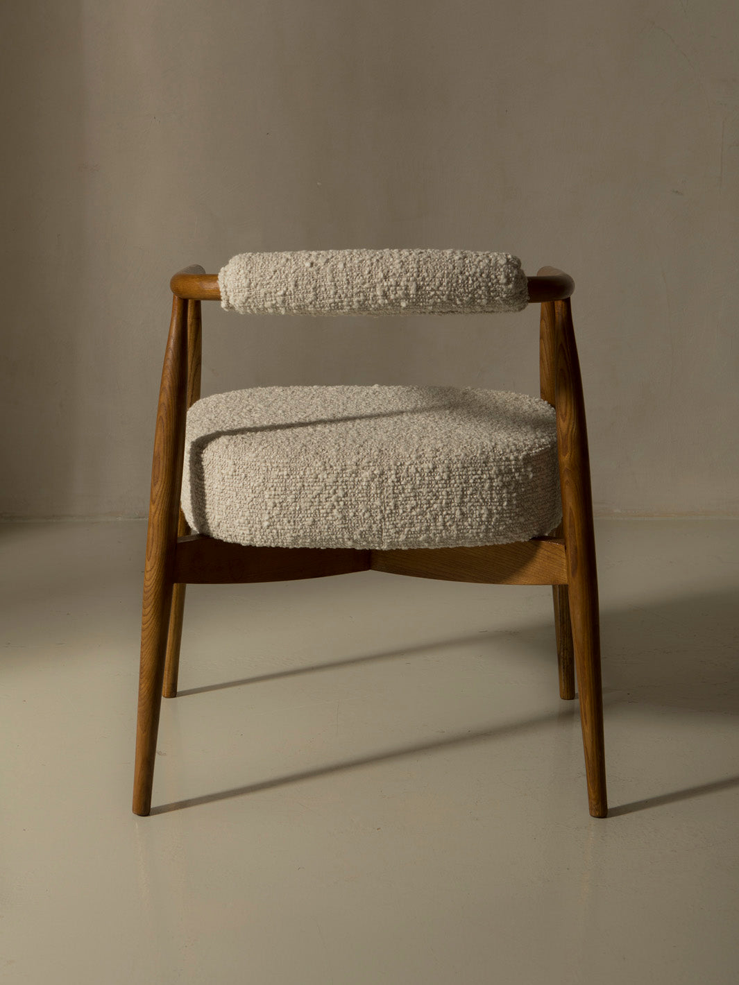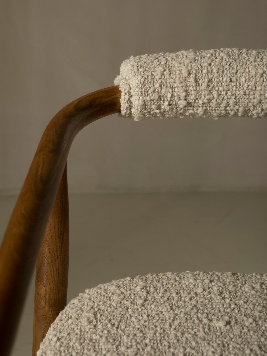 Silla butacón artesanal original de Italia en madera de teca. Su diseño envolvente y ligero combina líneas orgánicas con un aire moderno.