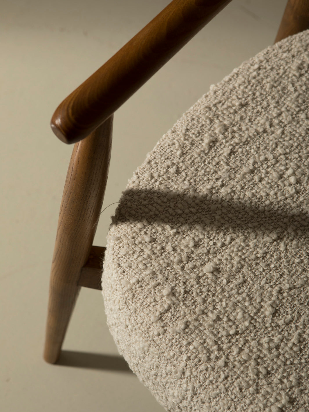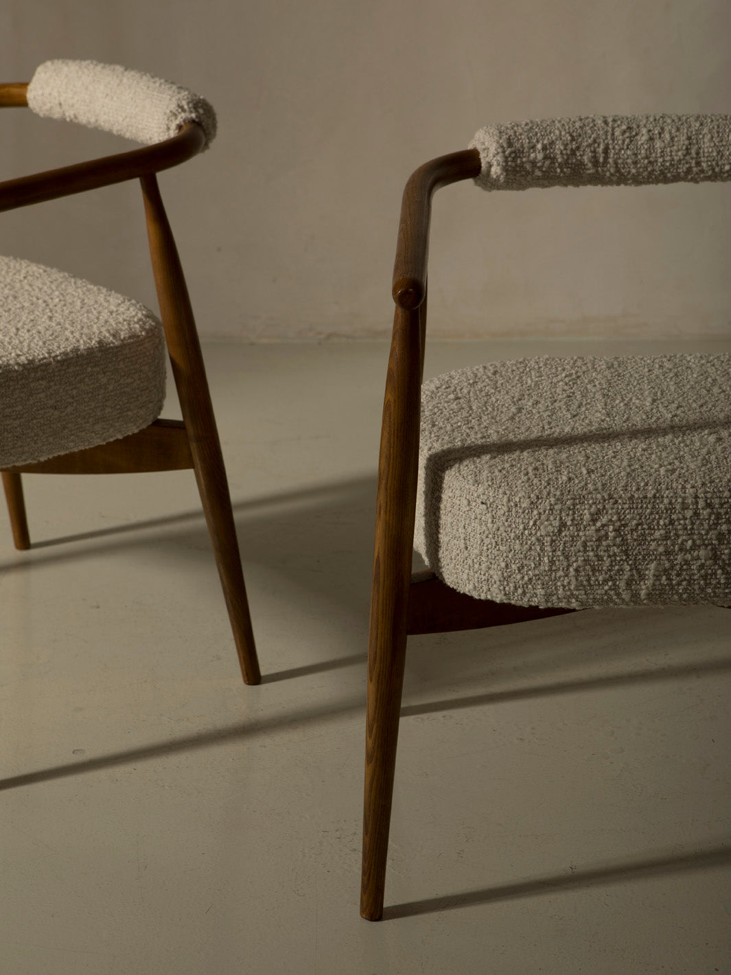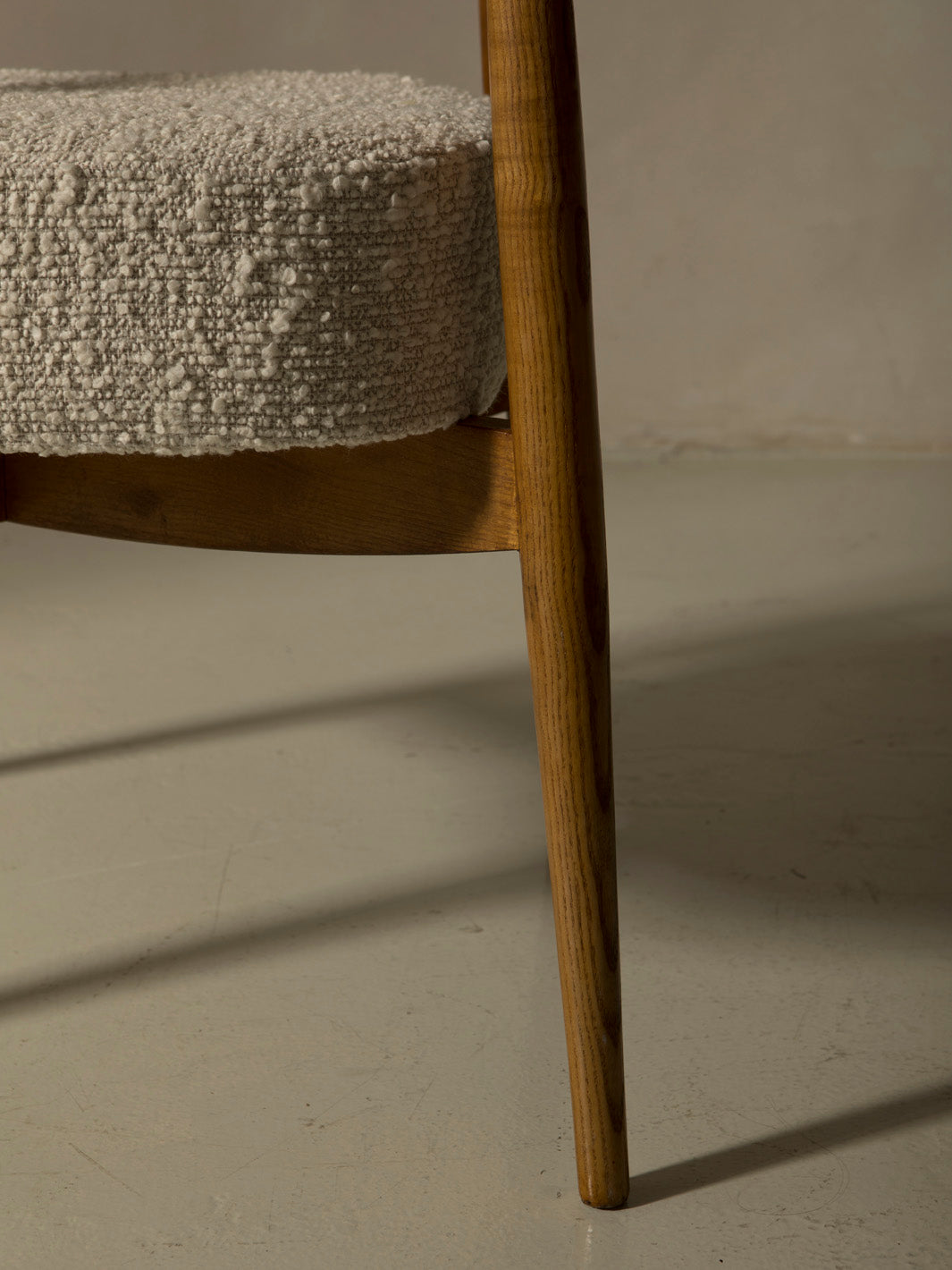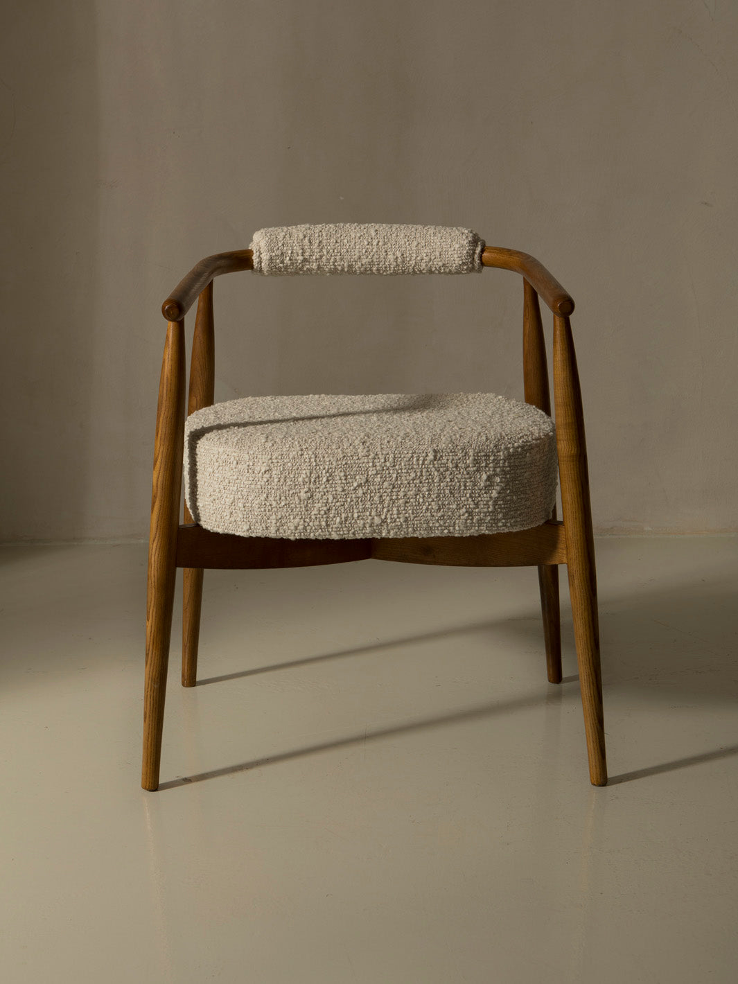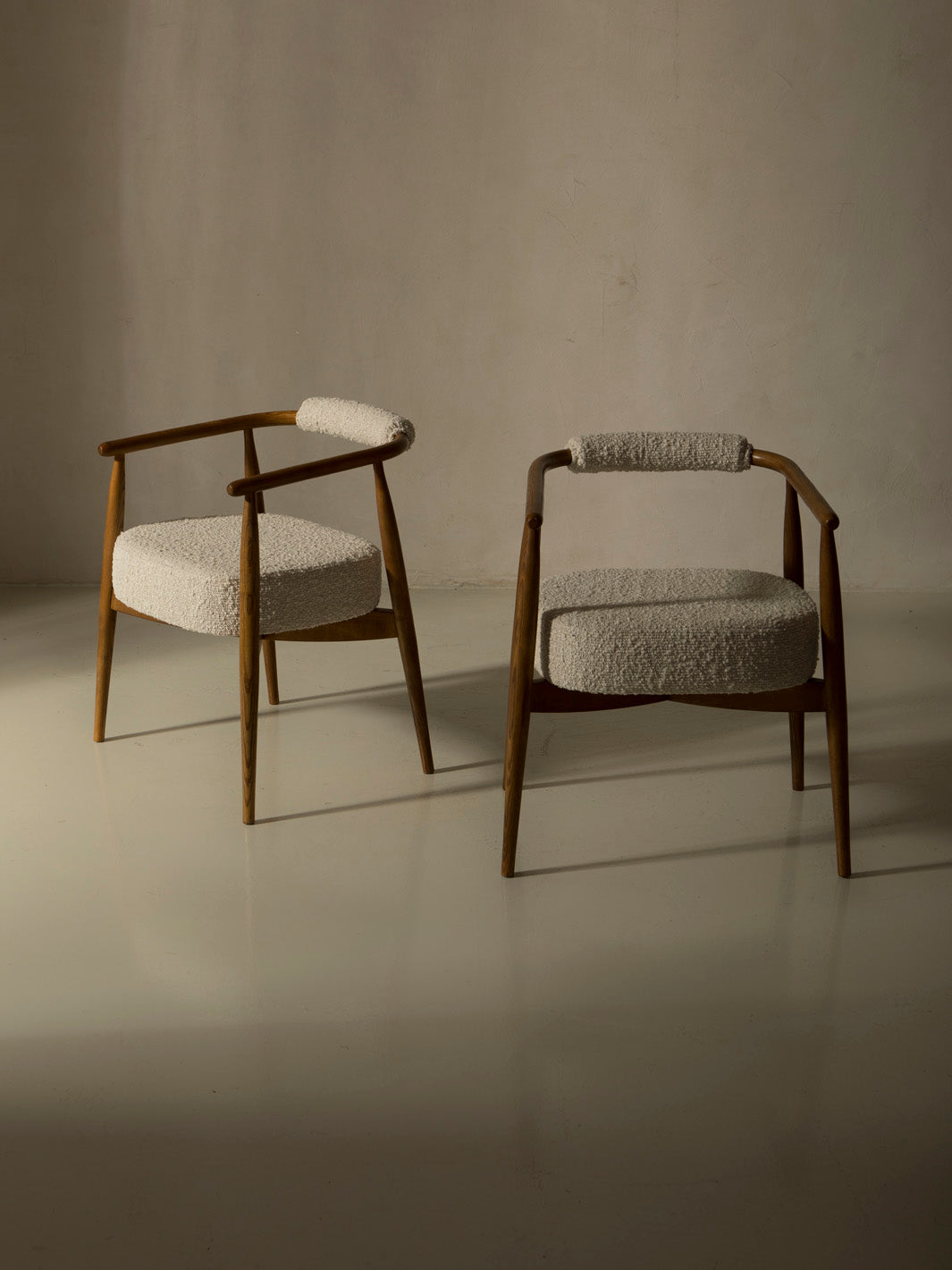 Silla butacón artesanal original de Italia en madera de teca. Su diseño envolvente y ligero combina líneas orgánicas con un aire moderno.
