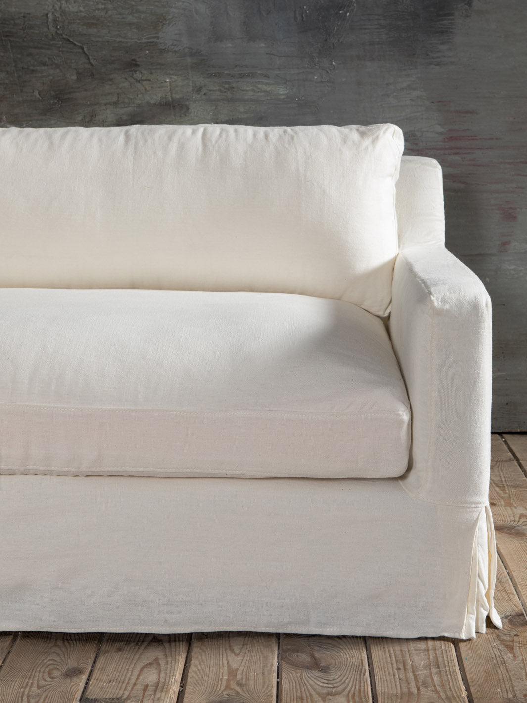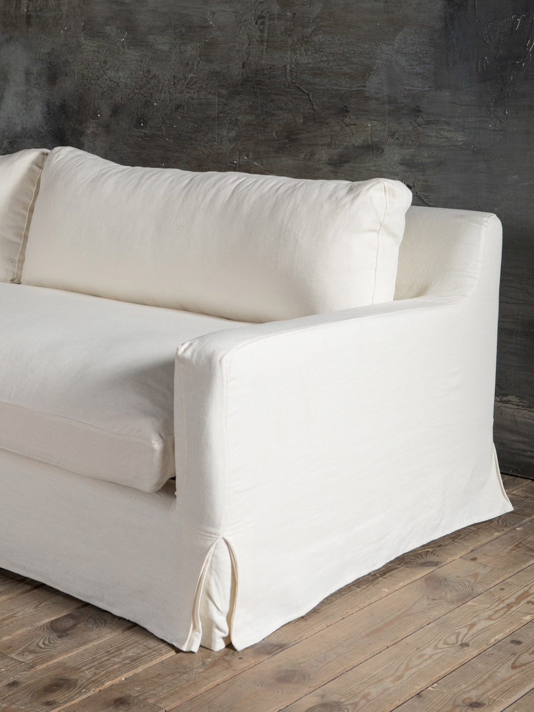 Sofá de inspiración Belga en lino desenfundable de color marfil. Es confortable y ergonómico, te atrapará en su mullida estructura.