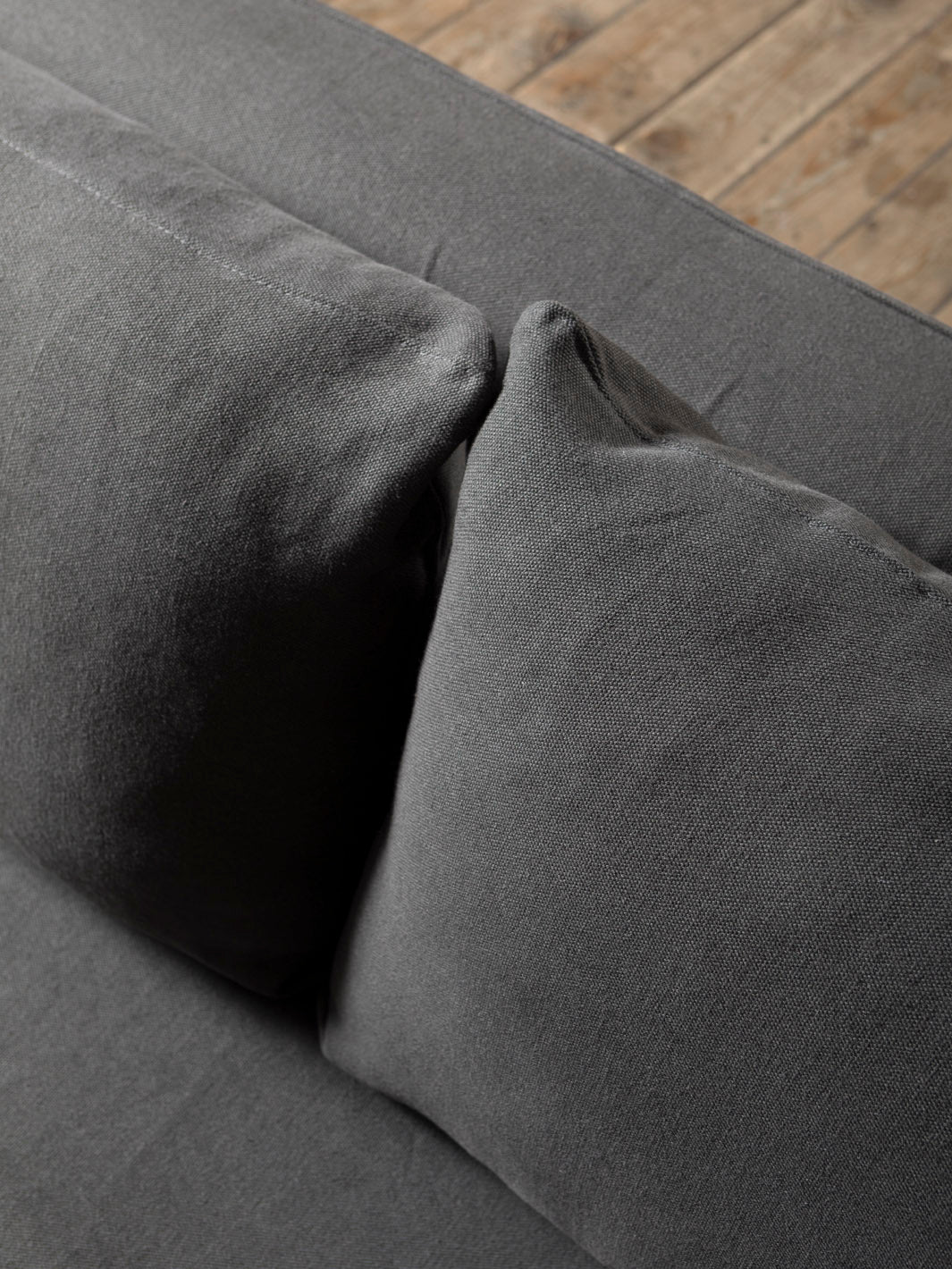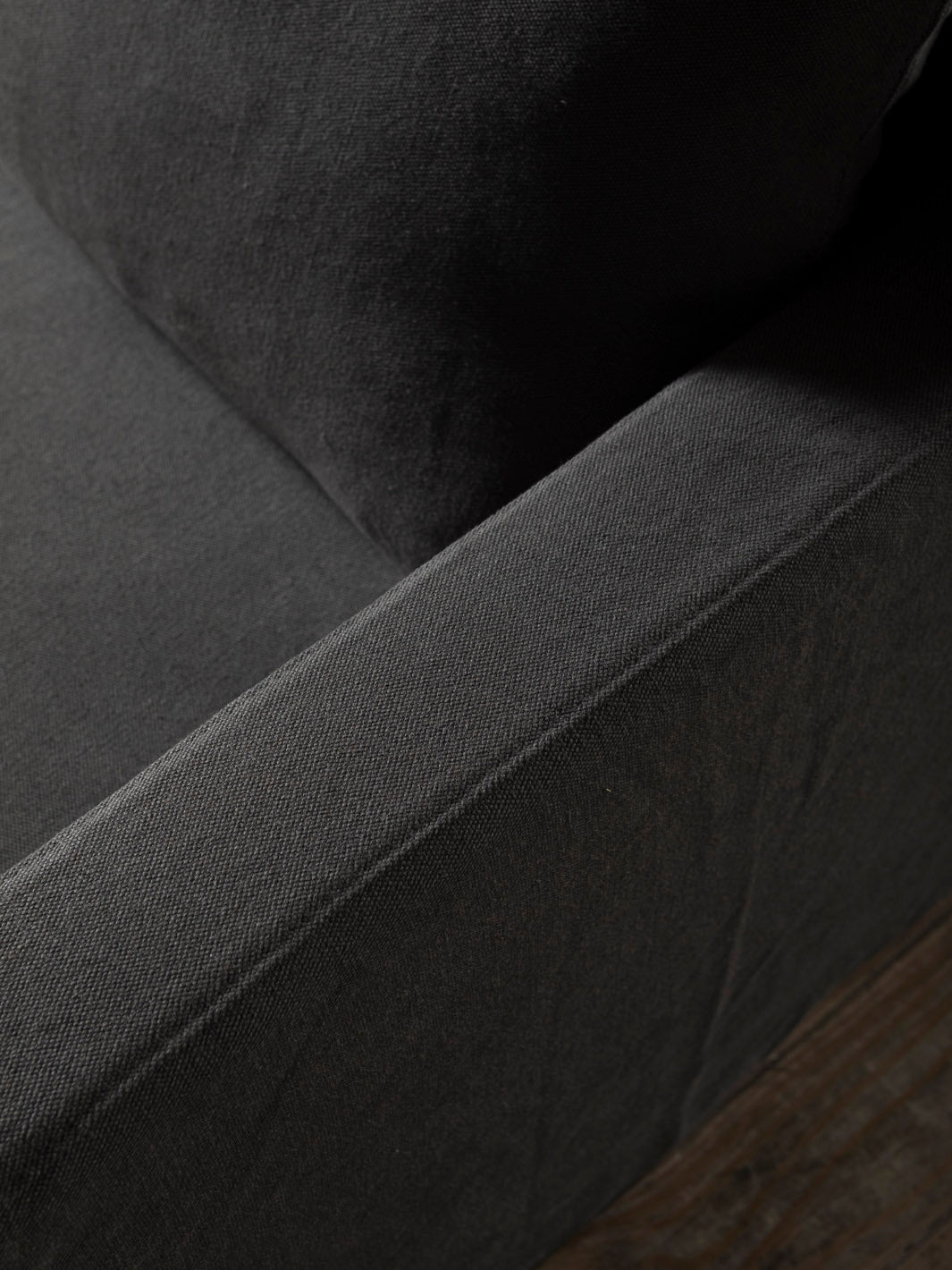 Inspirado en la luz del Alentejo Portugués, nace el sofá Comporta para hacer del descanso el mayor placer y evadirnos en un sofá cómodo, práctico y ligero visualmente. Trabajado en lino color gris antracita.
