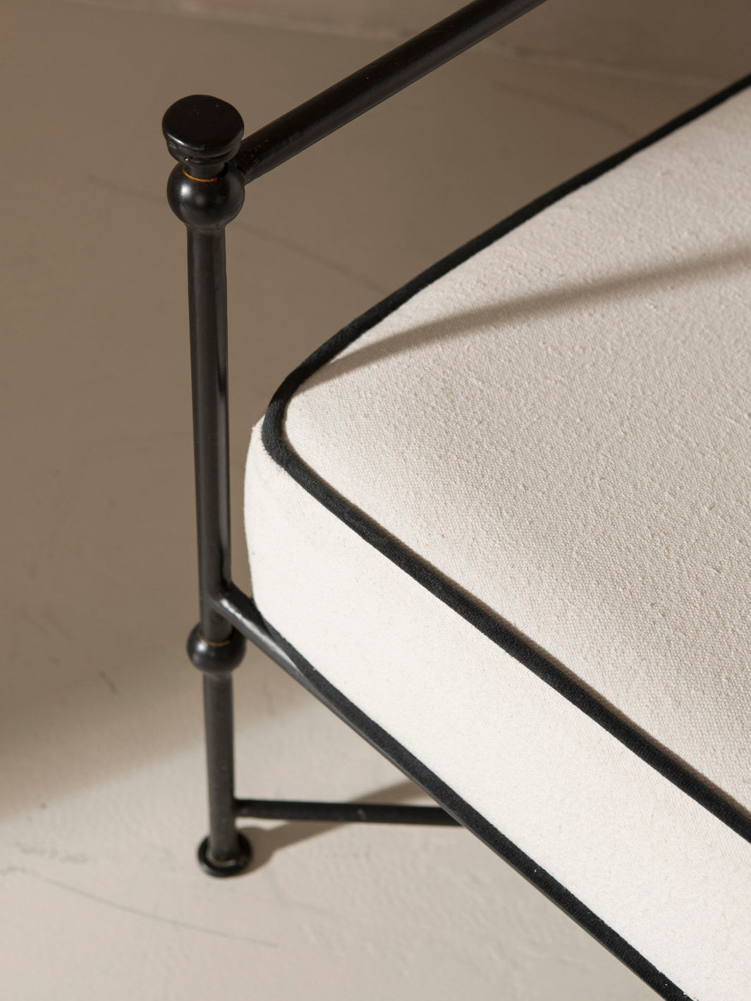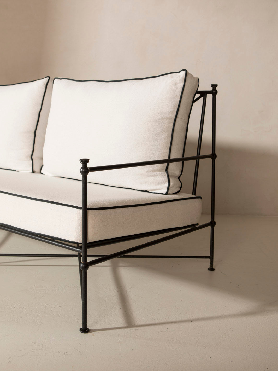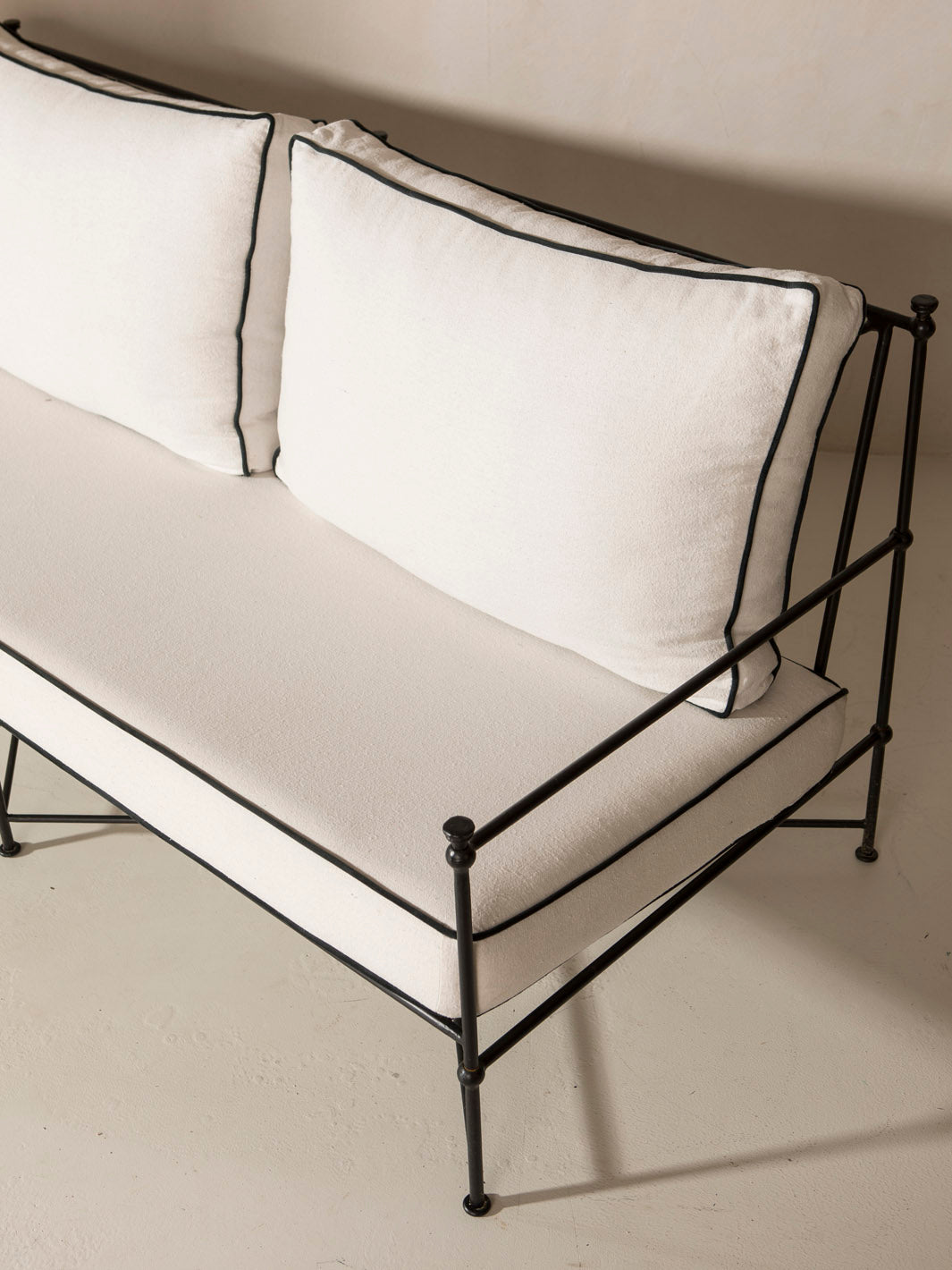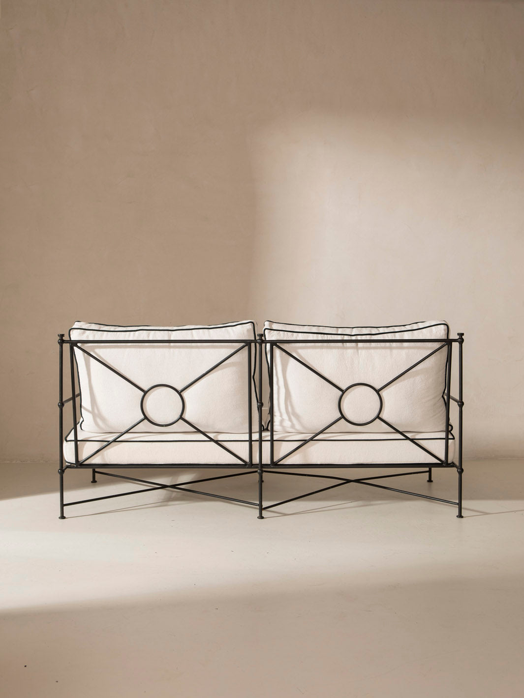 Nuestra colección de jardín es 100% artesanal concebida con las imperfecciones propias de su proceso. No son muebles técnicamente de exterior, a pesar de ello pueden vivir en espacios exteriores ya que el hierro está termolacado y preparado para vivir a la intemperie de forma moderada.