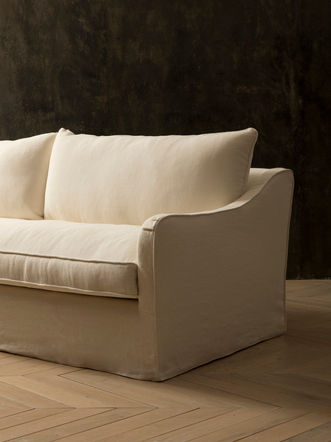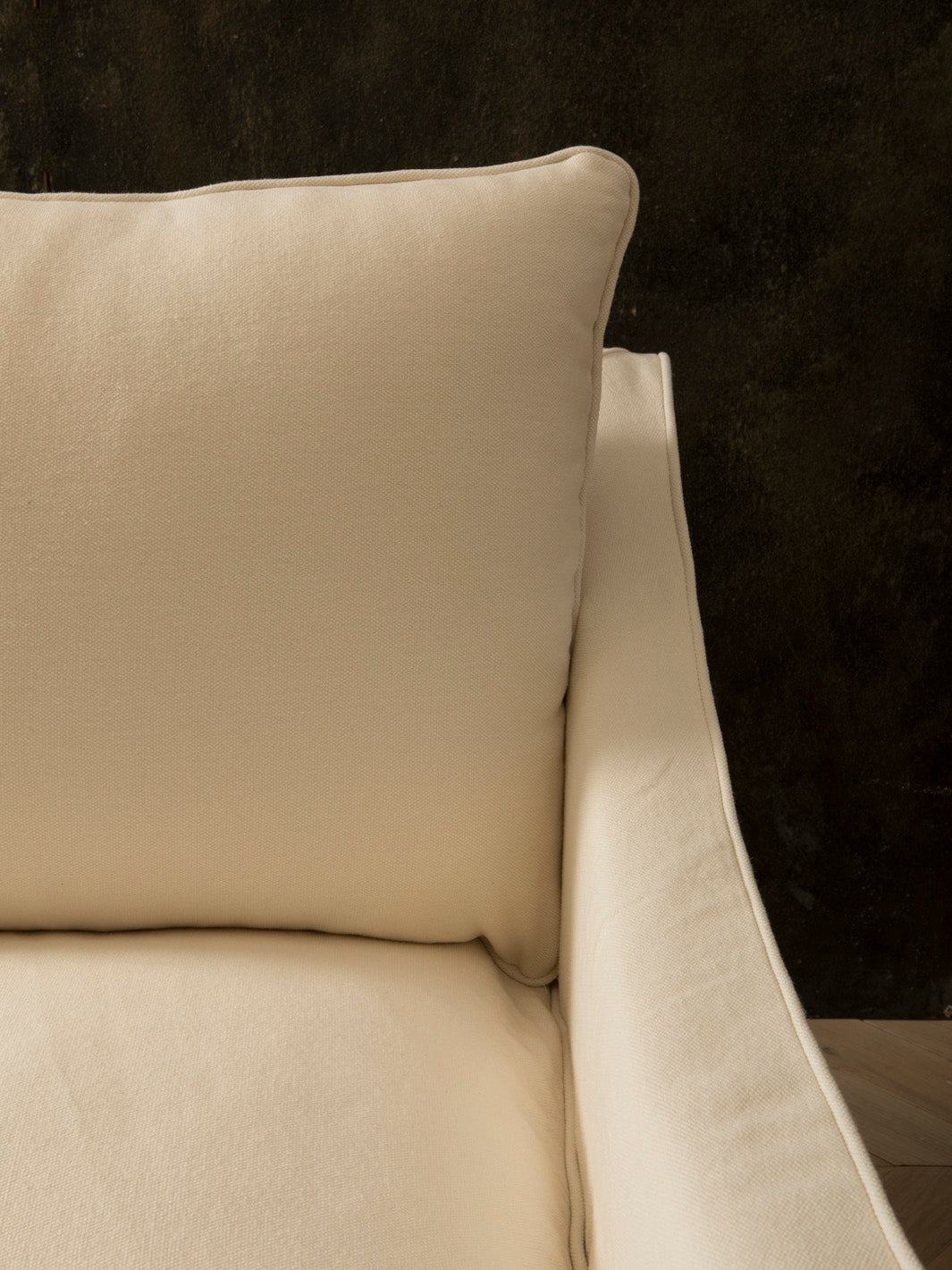 El sofá Soho es la definición de sofisticación y armonía. Su diseño de líneas suaves y refinadas lo convierte en una pieza elegante y atemporal, perfecta para espacios que buscan equilibrio entre comodidad y estilo. Tapizado en exquisito lino color marfil, sus formas sutilmente curvadas y su estructura impecable evocan el lujo discreto, mientras que su asiento amplio y cojines acolchados garantizan una comodidad inigualable.