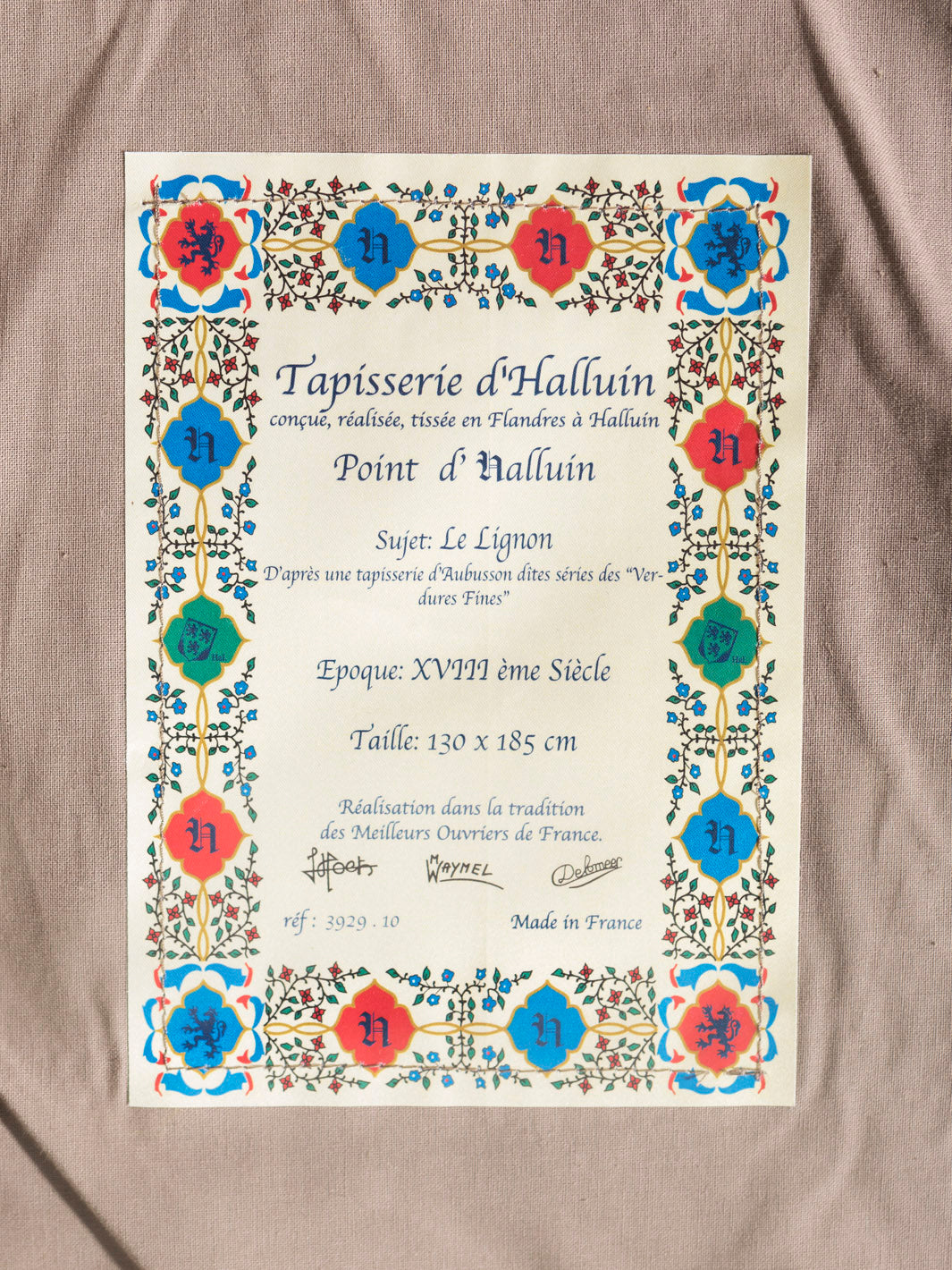 Tapiz tejido y confeccionado actualmente en Halluin, Francia.