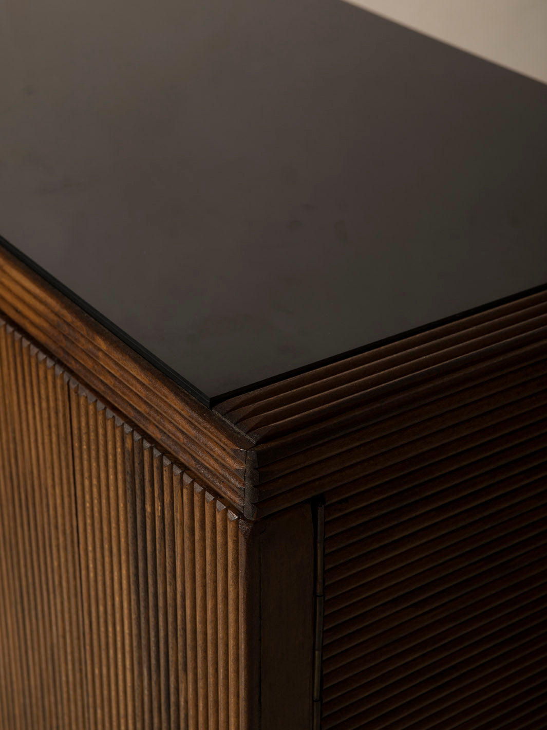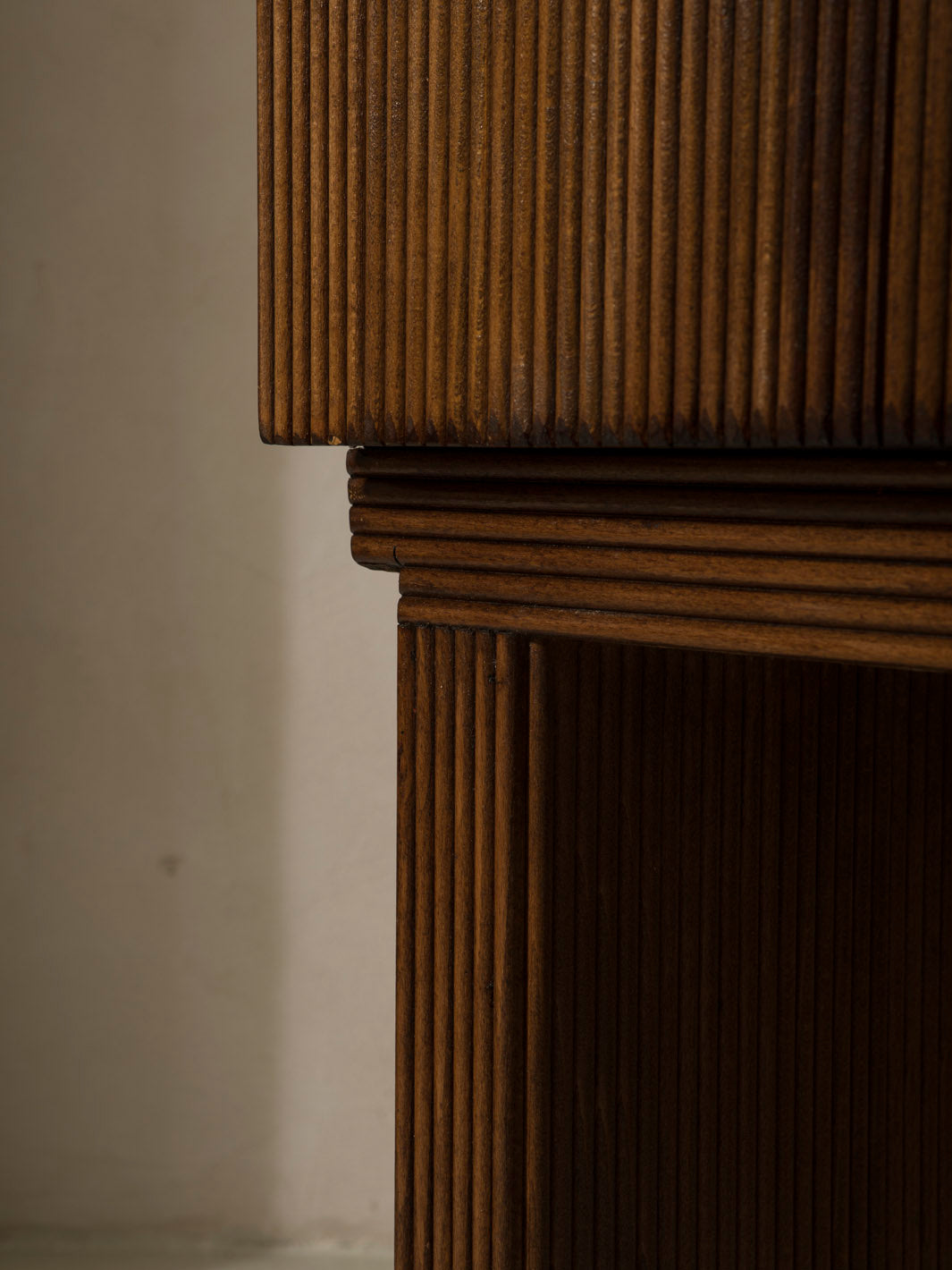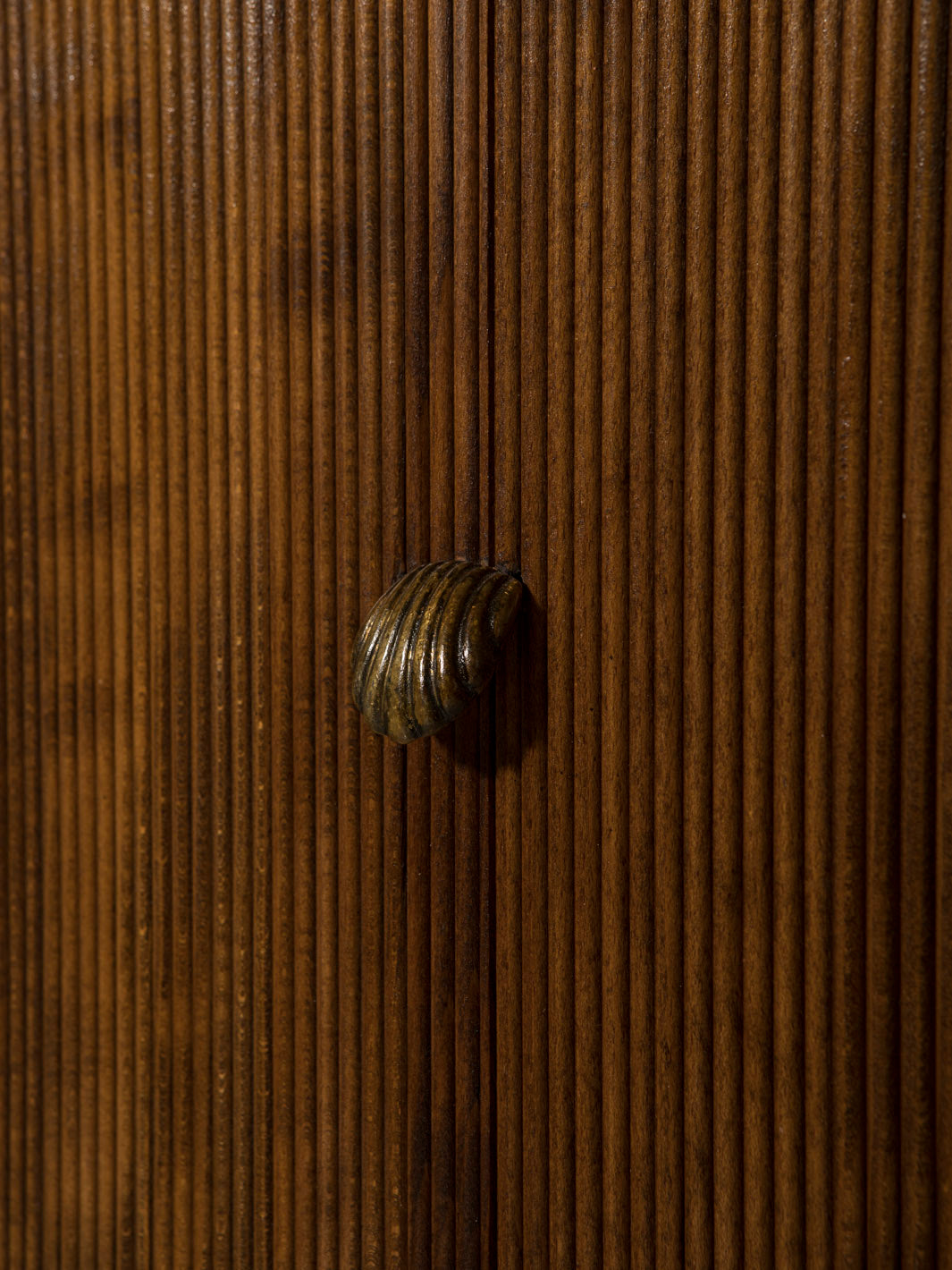 Mueble bar trabajado en roble y latón original con baldas en cristal, original de Italia de los años 60.