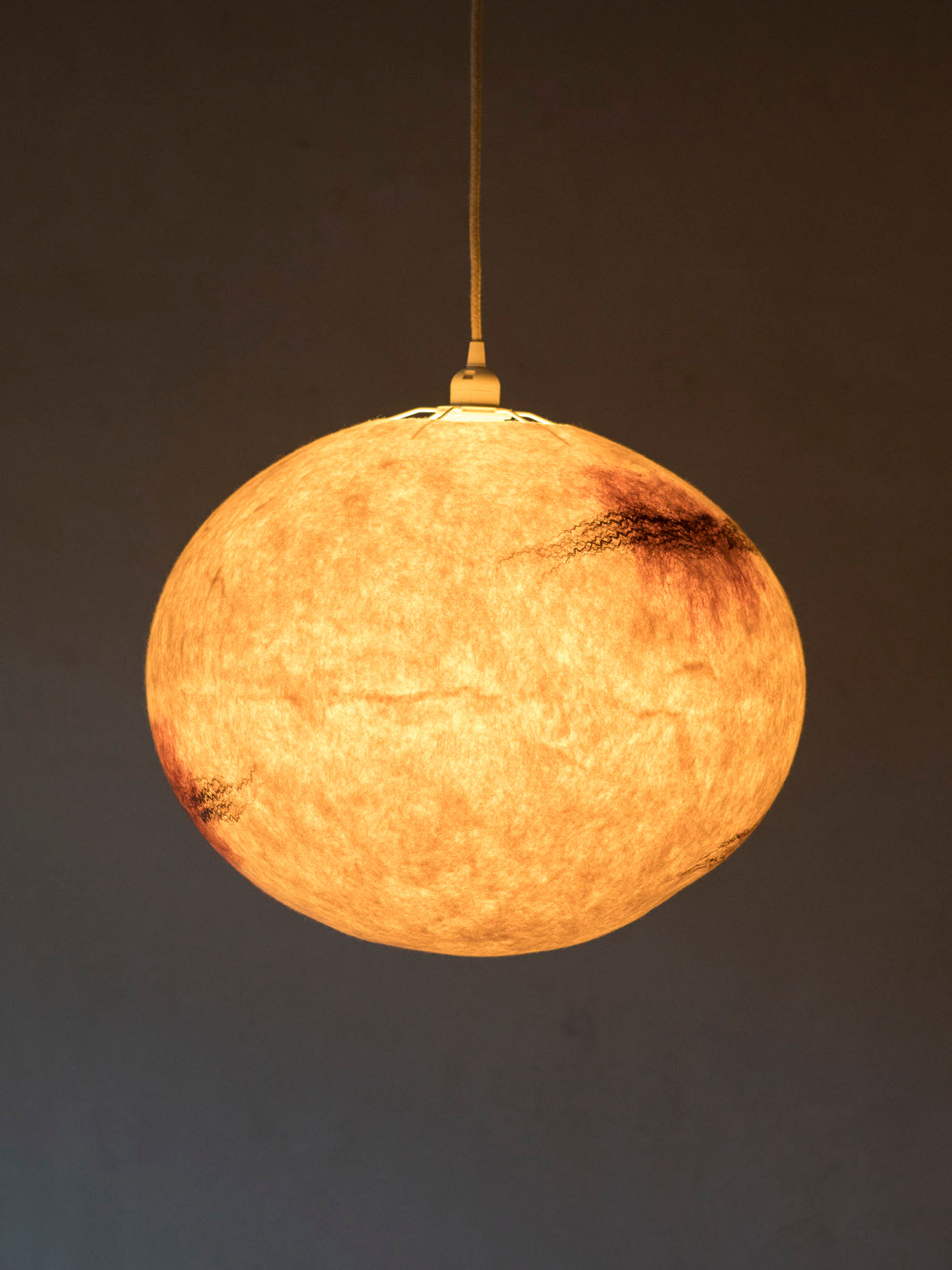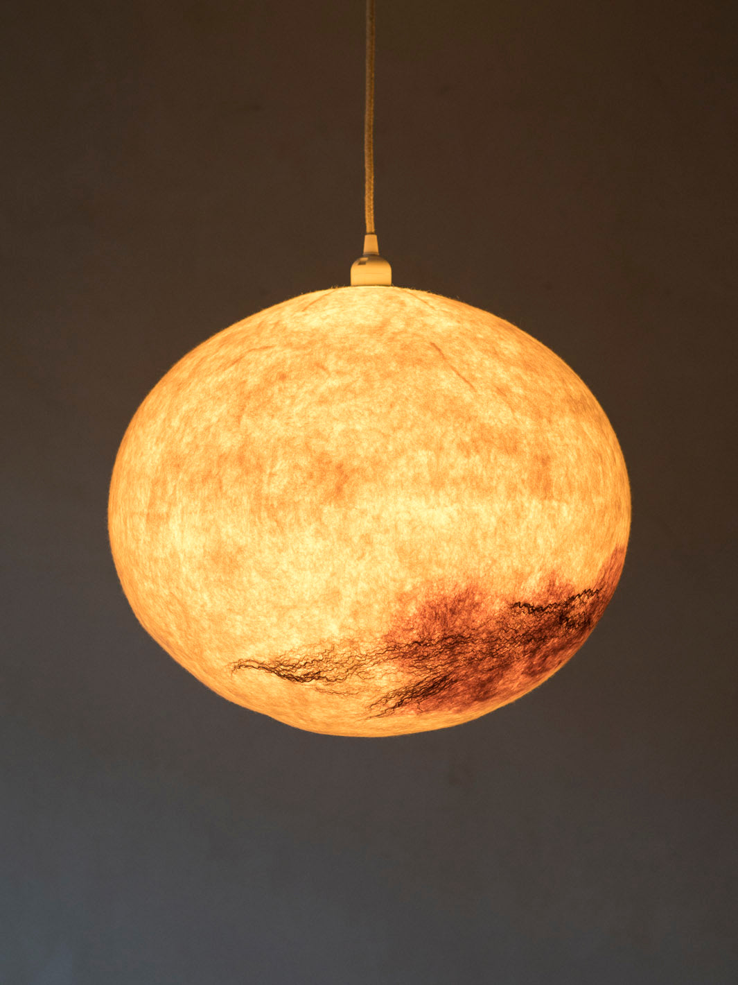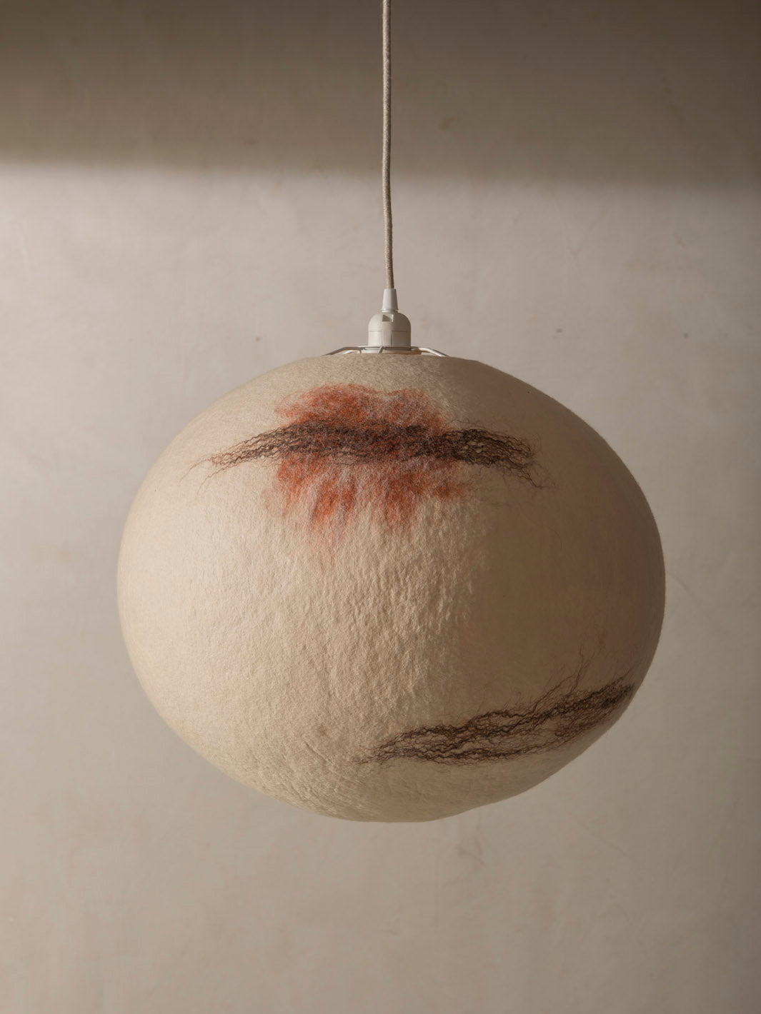 Una colección viva de piezas de iluminación artística, producidas artesanalmente con fibras naturales. Diseñamos con emoción, técnica y alma. No se genera ningún desperdicio, ni se contamina en el proceso de producción ya que solo empleamos lana, agua, jabón de oliva y la energía de nuestras manos. Puede haber pequeñas diferencias de formas, tamaño y textura. Abrazamos esas “irregularidades” que tienen lo hecho a mano.