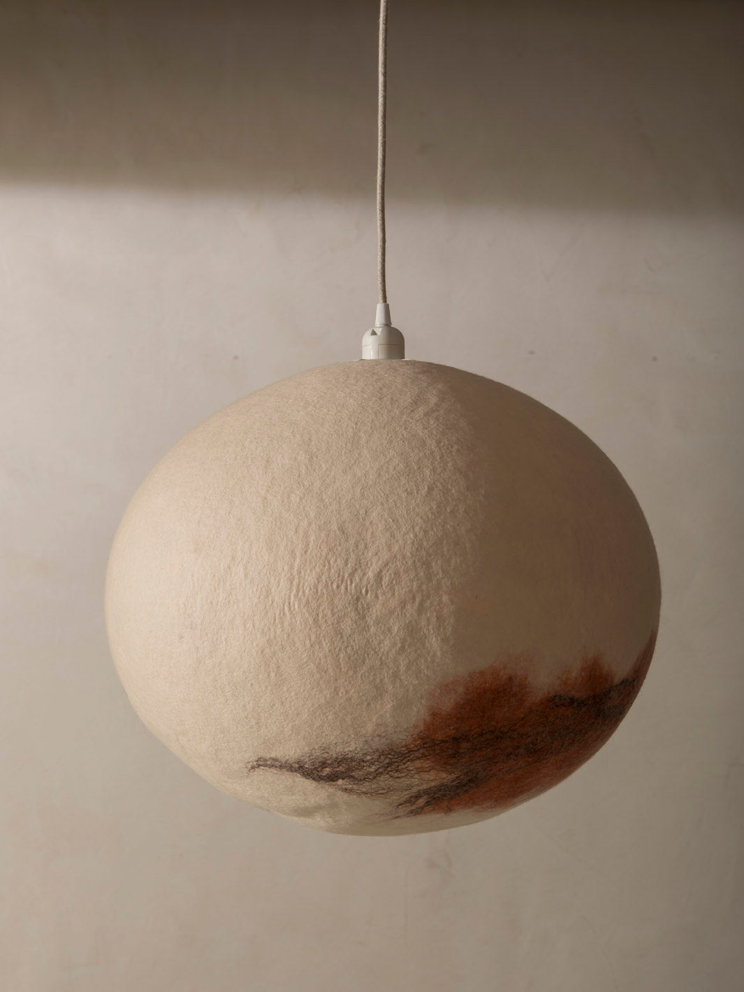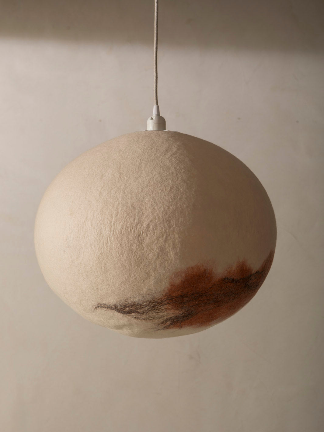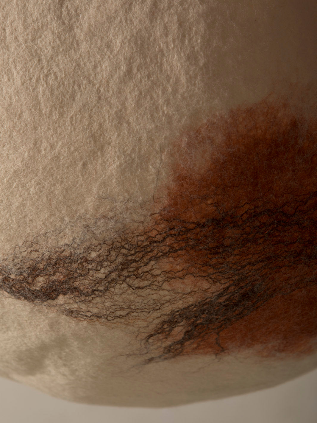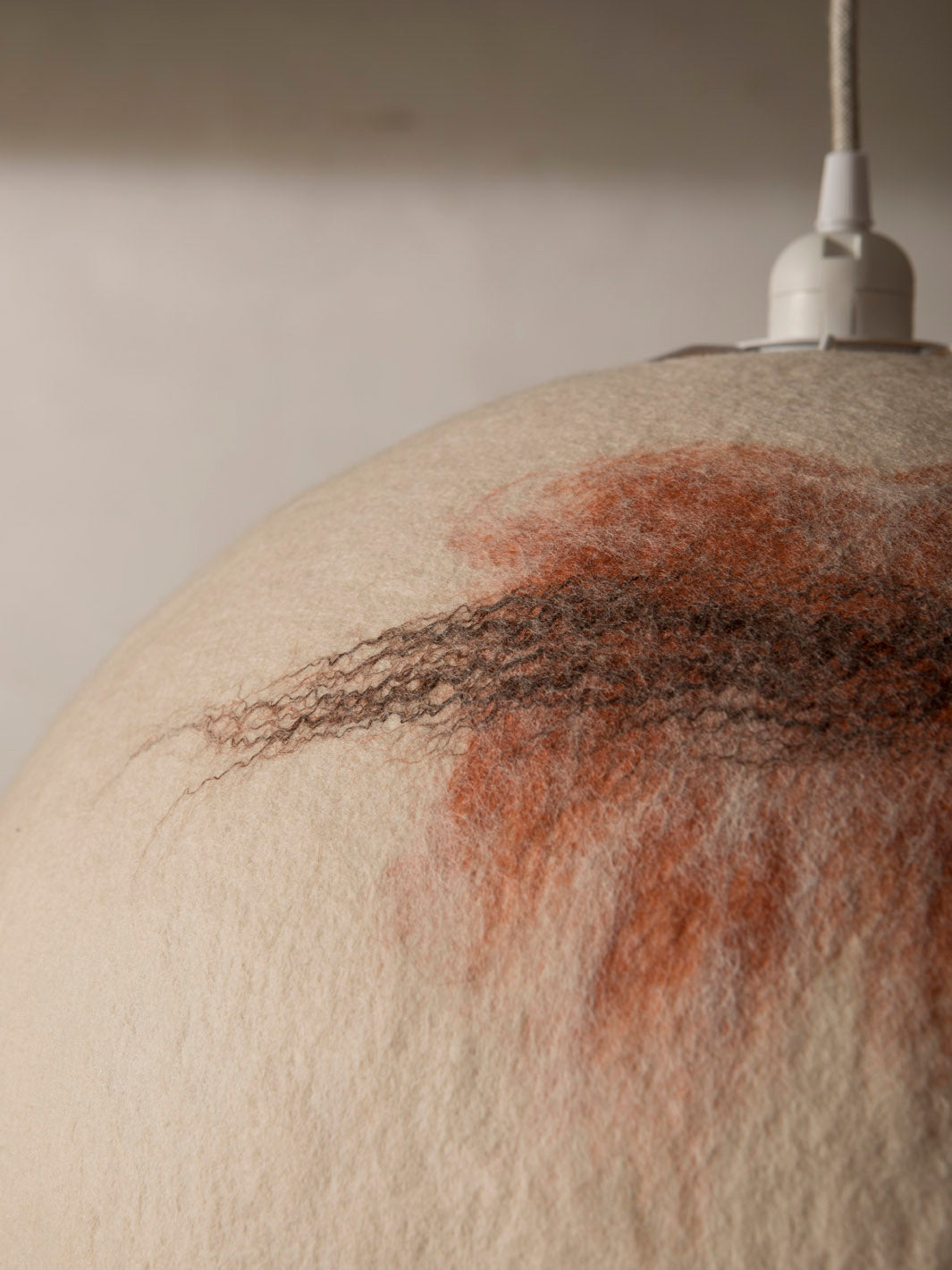 Una colección viva de piezas de iluminación artística, producidas artesanalmente con fibras naturales. Diseñamos con emoción, técnica y alma. No se genera ningún desperdicio, ni se contamina en el proceso de producción ya que solo empleamos lana, agua, jabón de oliva y la energía de nuestras manos. Puede haber pequeñas diferencias de formas, tamaño y textura. Abrazamos esas “irregularidades” que tienen lo hecho a mano.