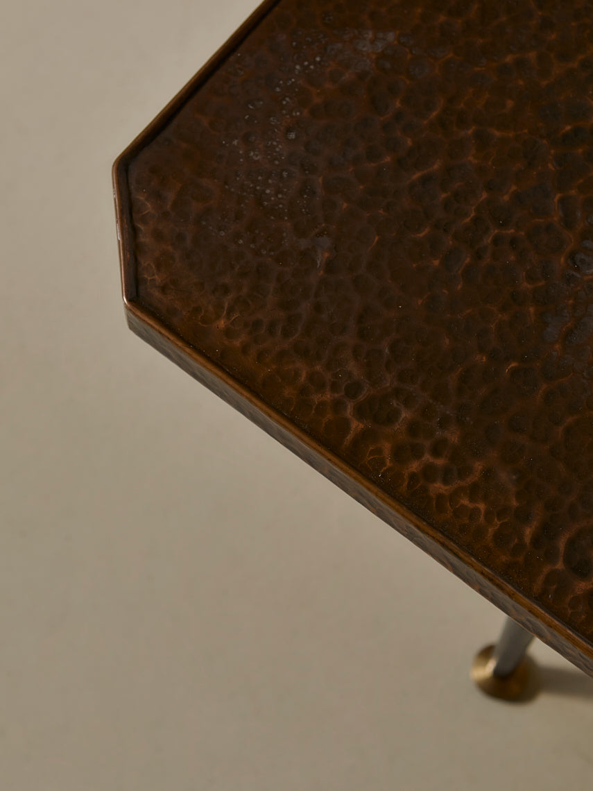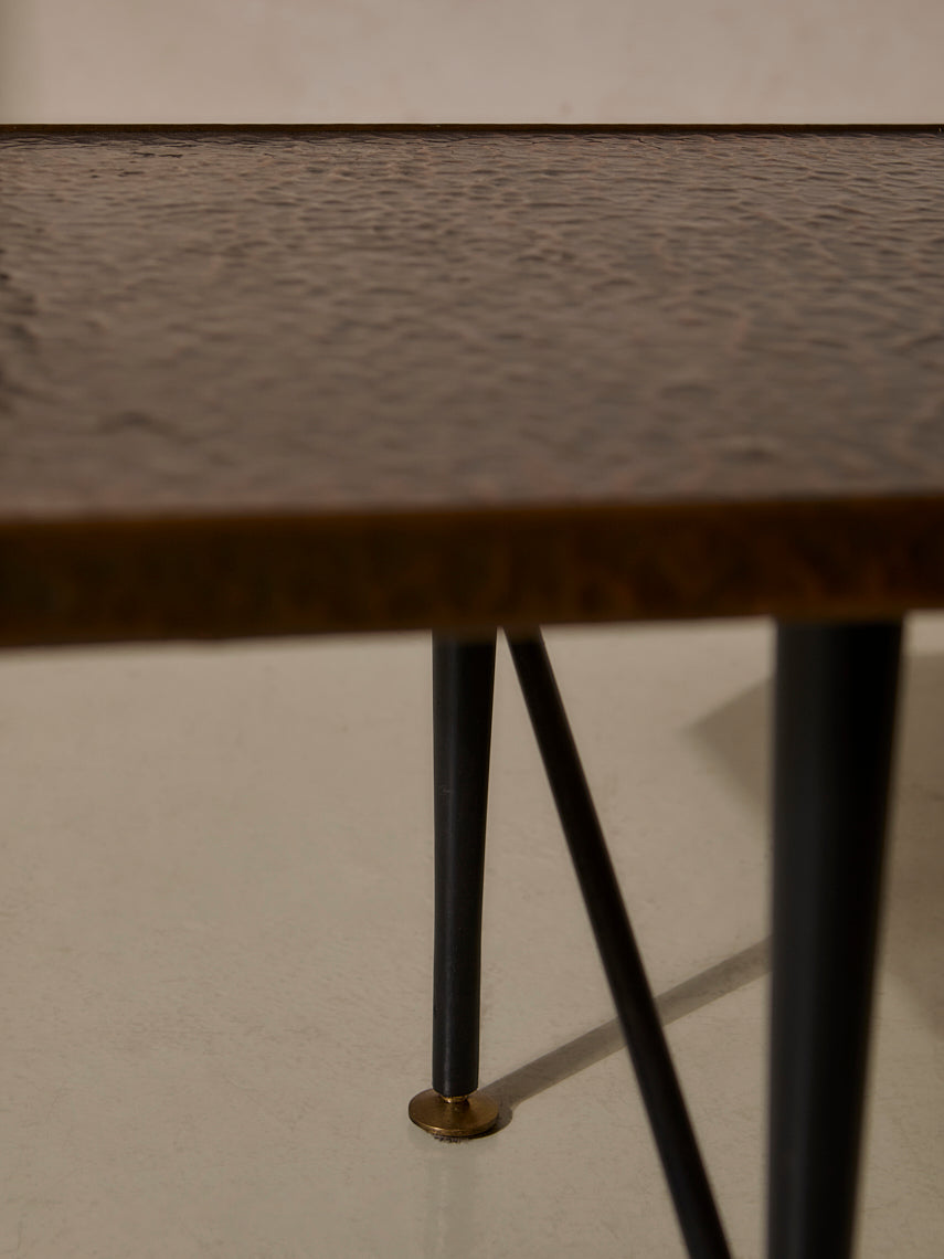 Mesa en cobre marteleado y pies en hierro original de Italia de los años 60.