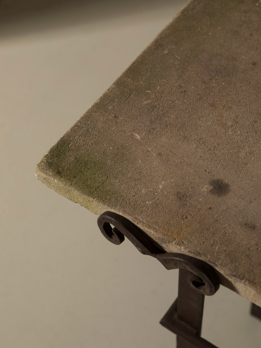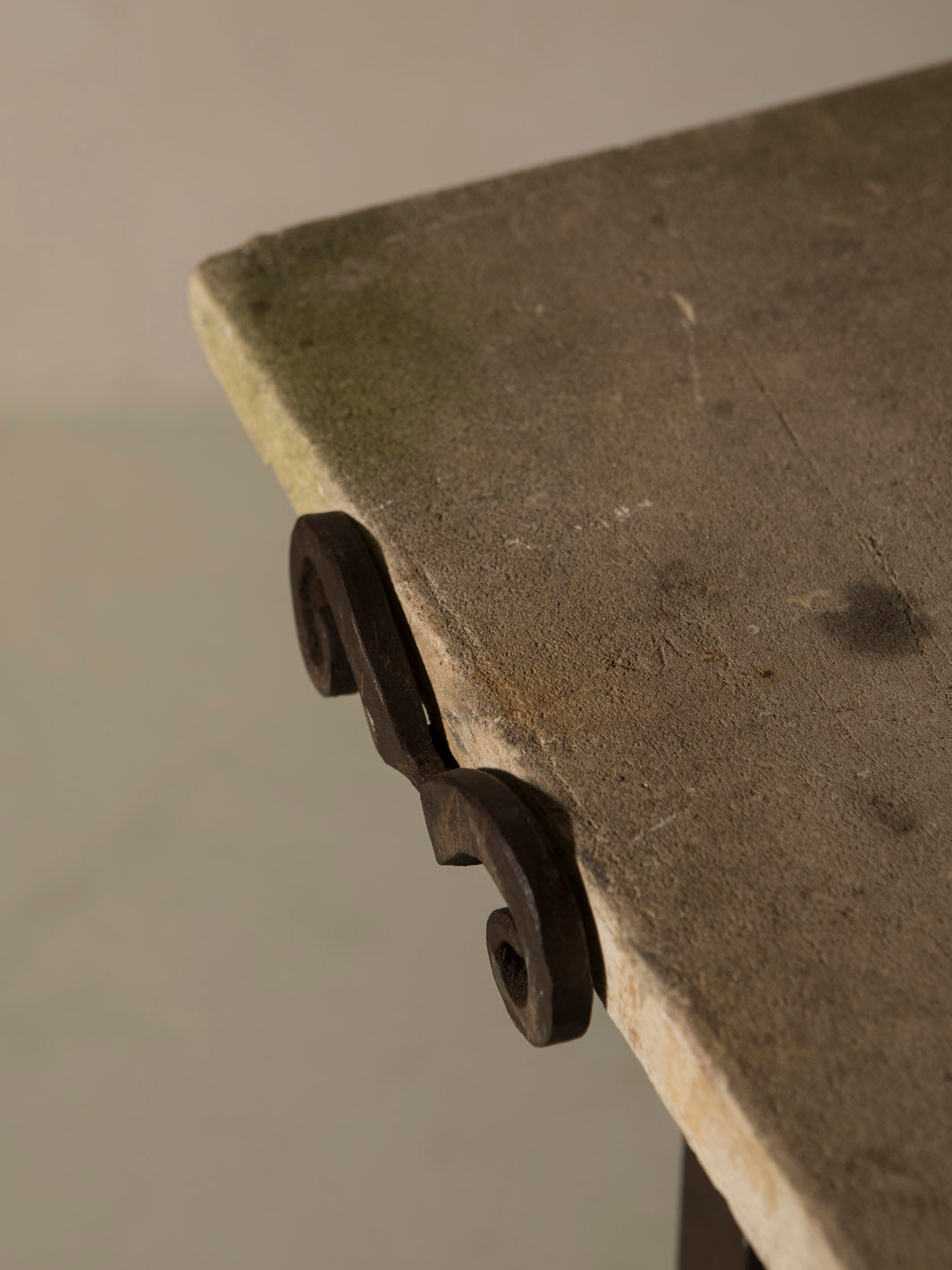 Mesa en piedra de Rogne y base en hierro forjado del siglo XIX.