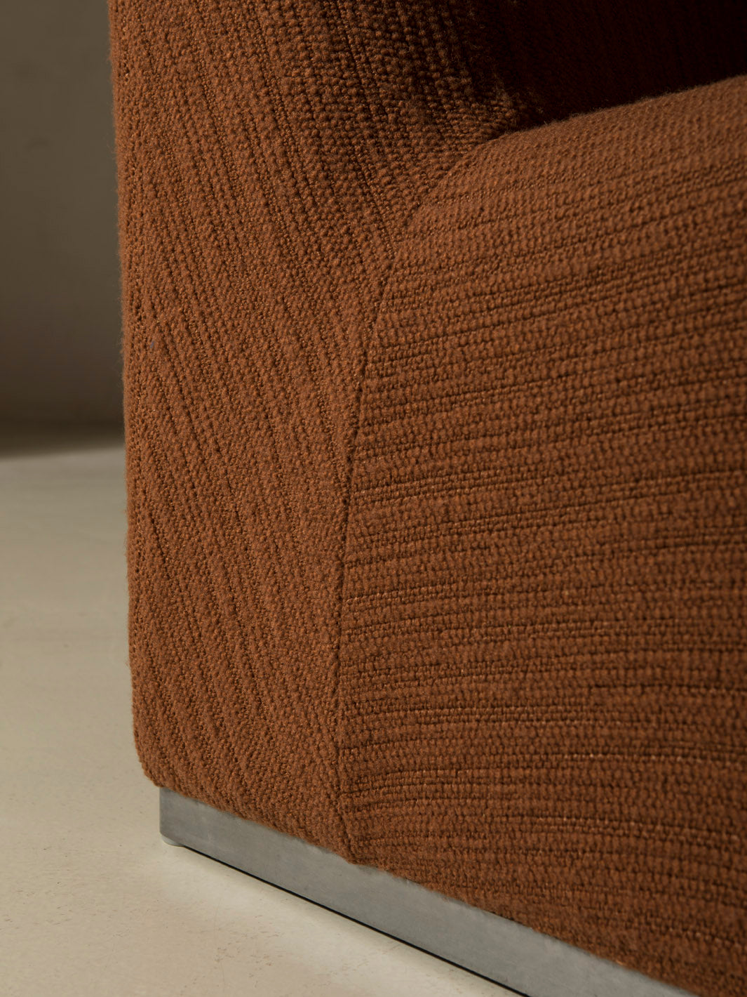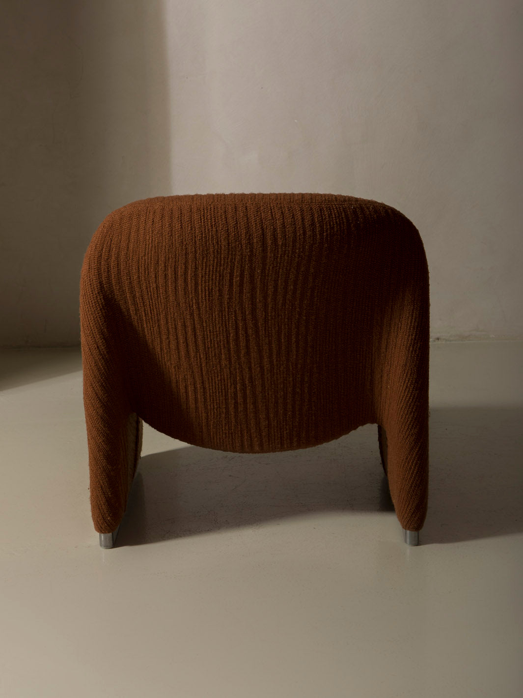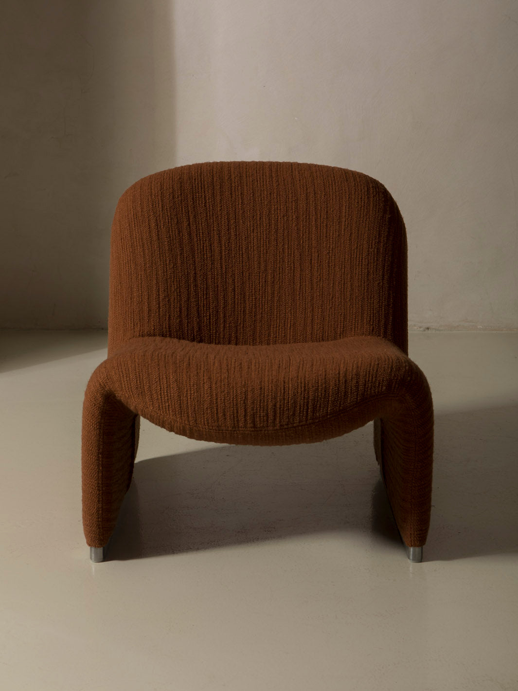 Pareja de butacas "Alky" del diseñador italiano Giancarlo Piretti, originales de los años 70. Tapizadas en lana y lino de Elitis en color caldero.