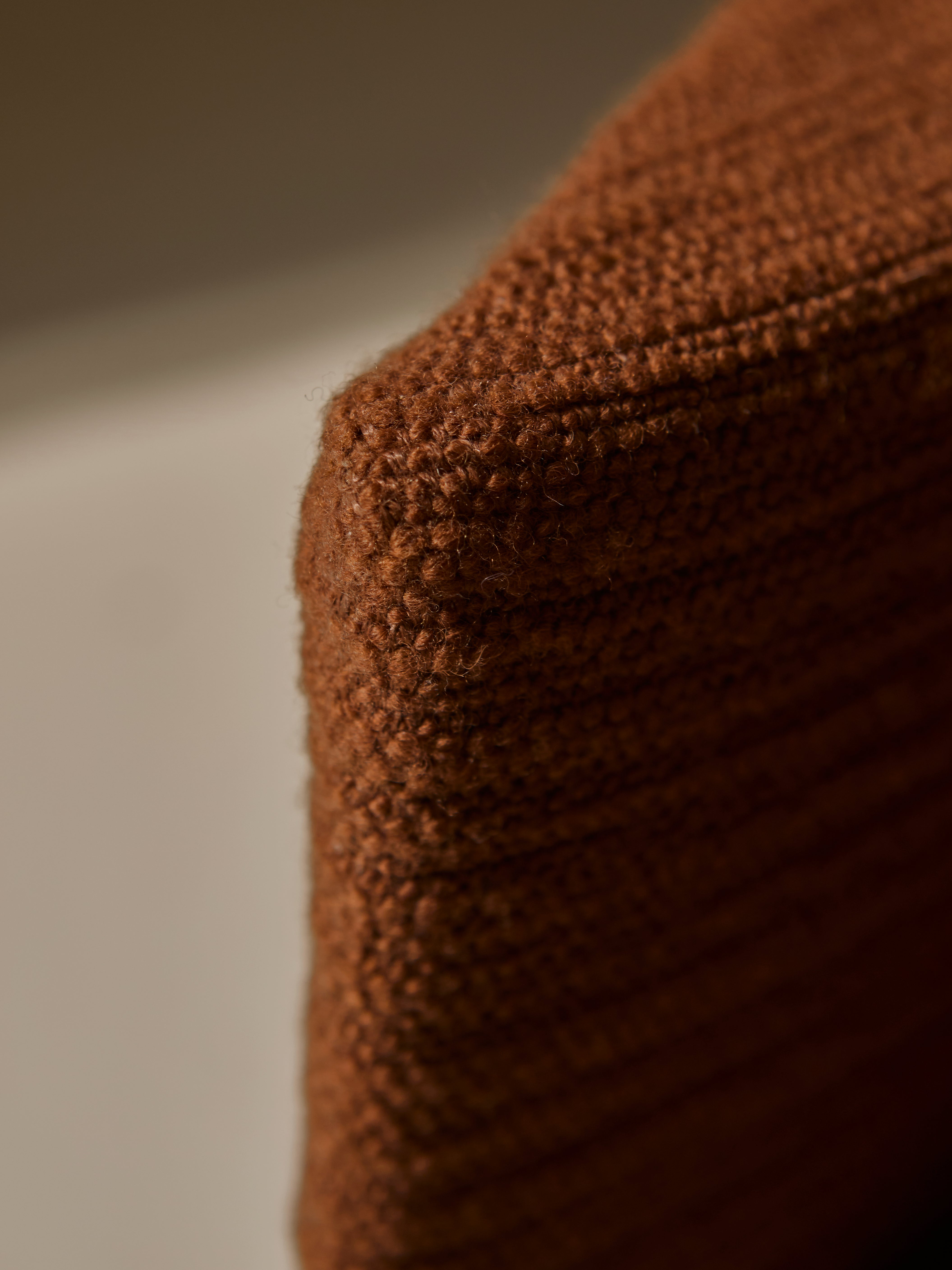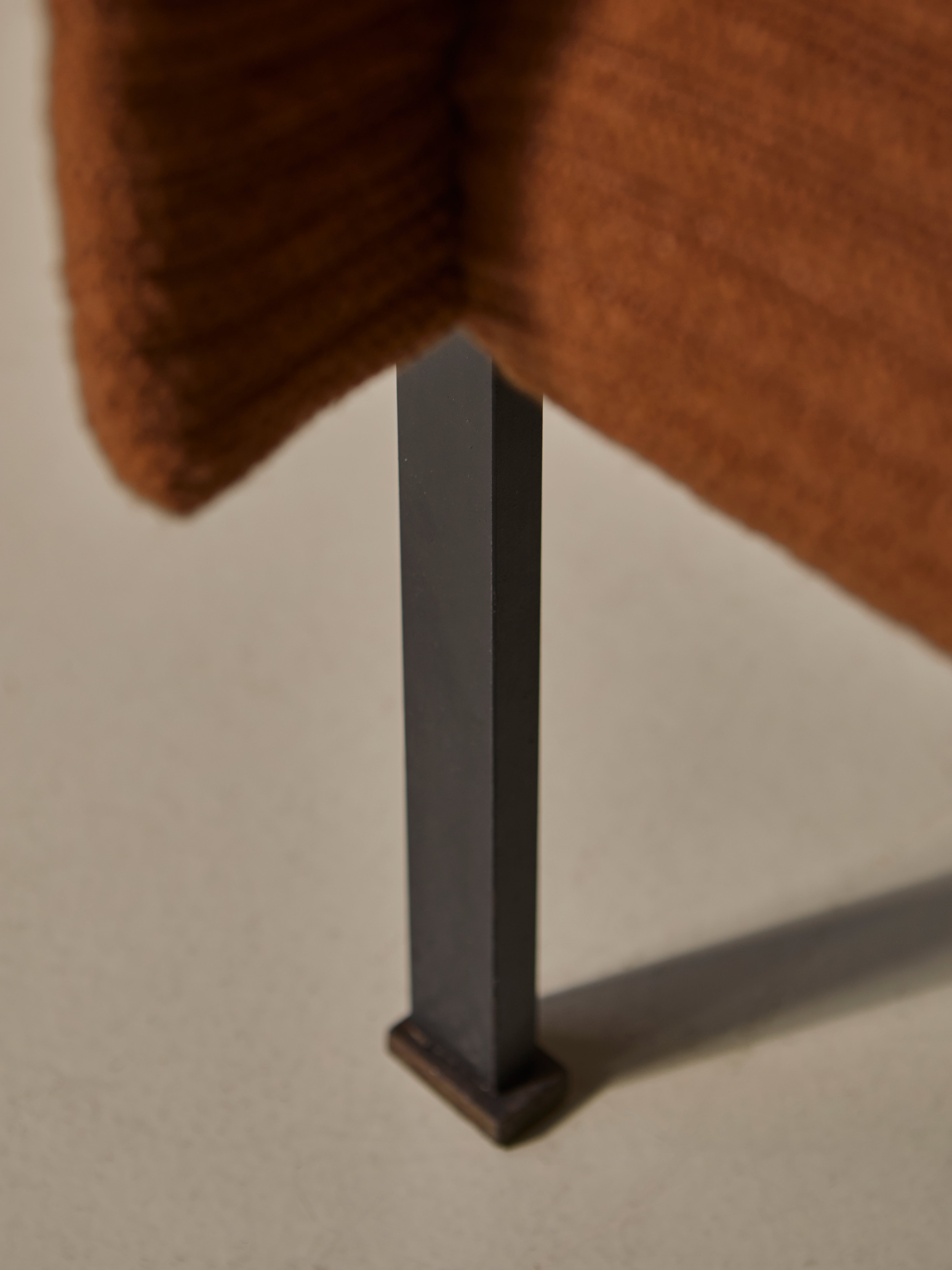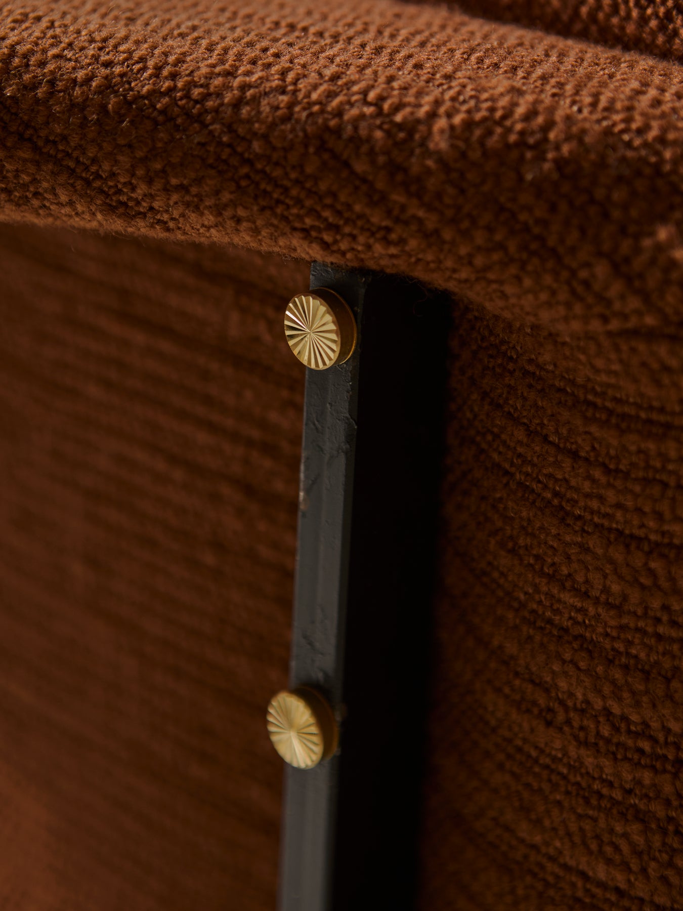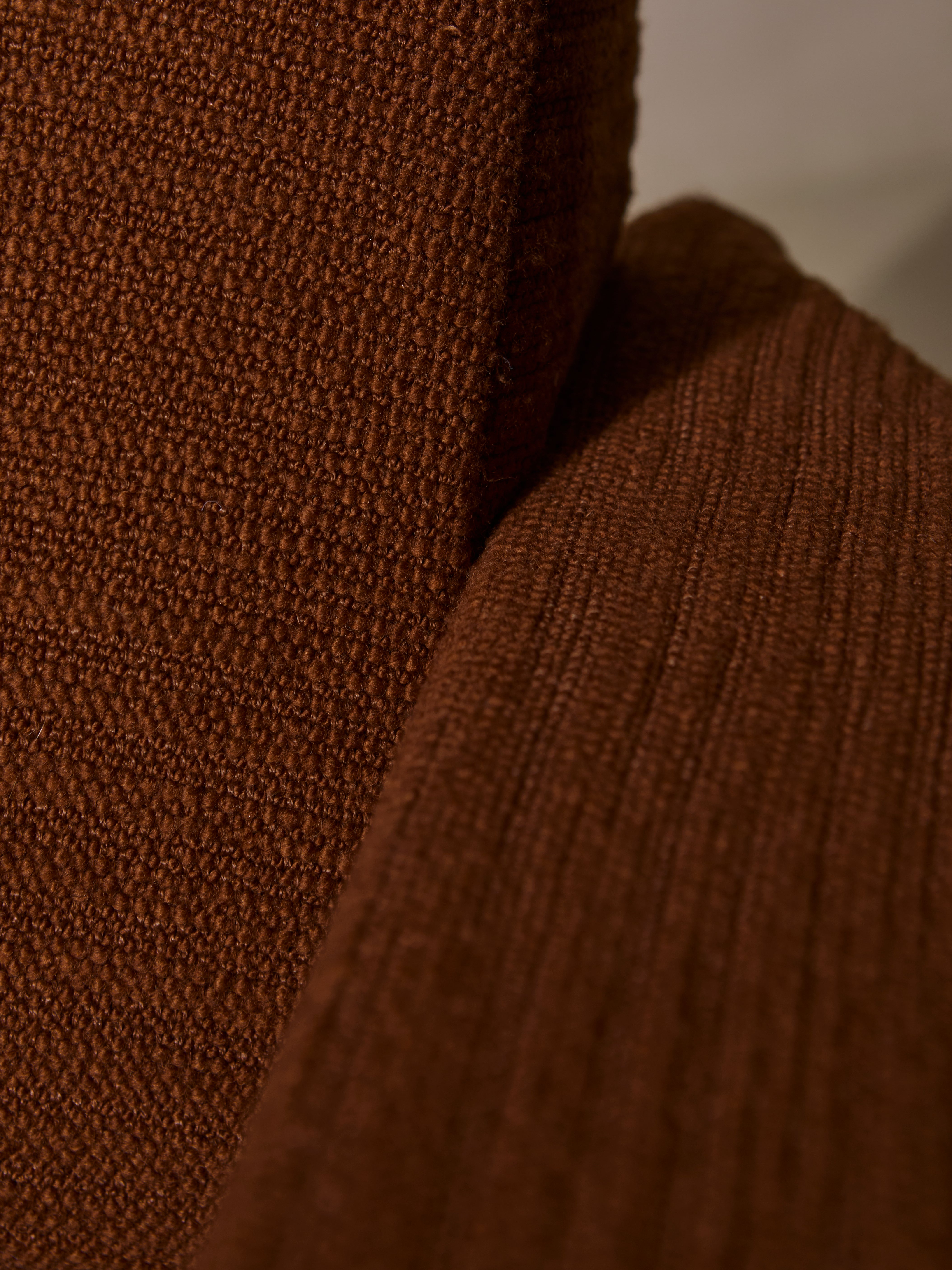 Singular pareja de butacas italianas originales de los años 60, con un diseño inédito en sus brazos. Tapizadas en lana color teja.