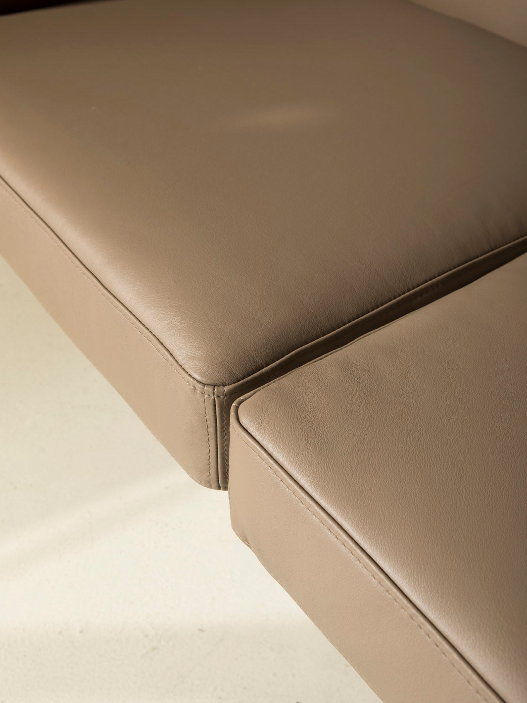 Juego de sofá y pareja de butacas originales de Italia. Trabajados artesanalmente en acero corten recuperado, y almohadones tapizados en una piel de vacuno de alta calidad ecológica, seleccionada por su textura uniforme, tacto suave y resistencia excepcional.