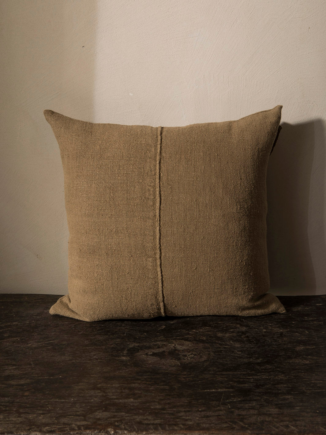 Reclaimed hemp cushion from the early 20th century by designer Isabelle Yamamoto, dyed and handcrafted.