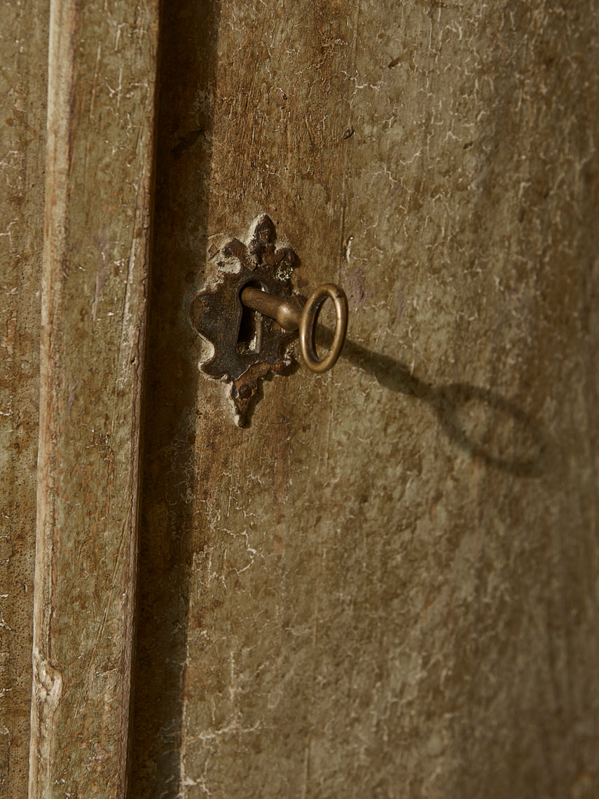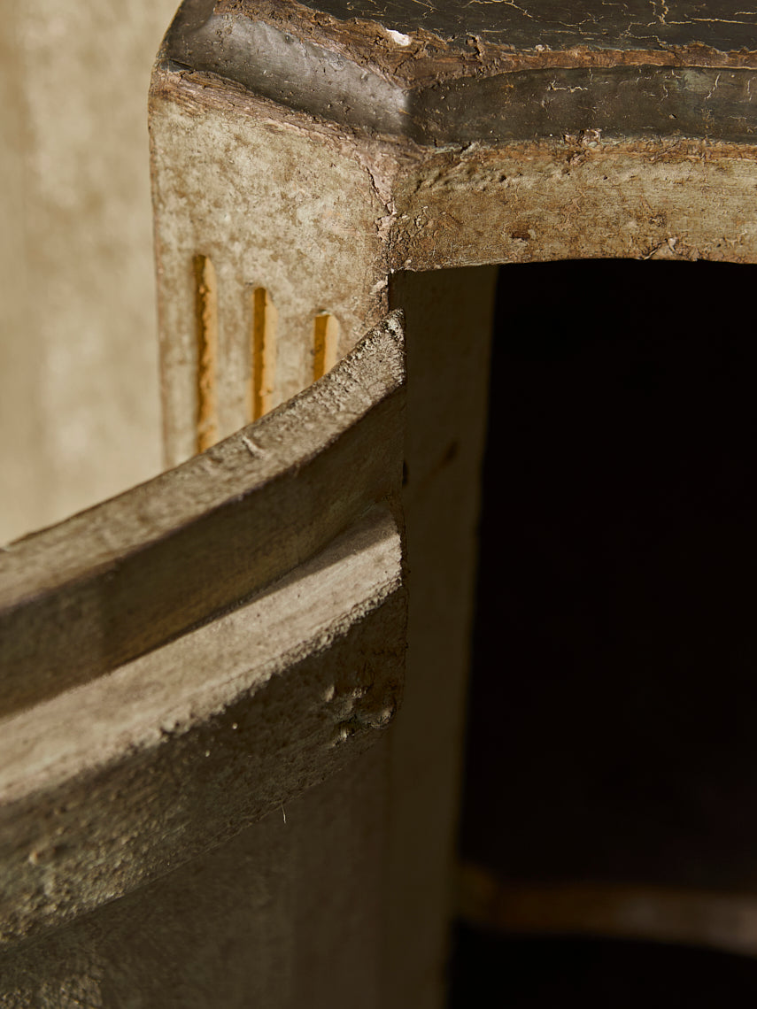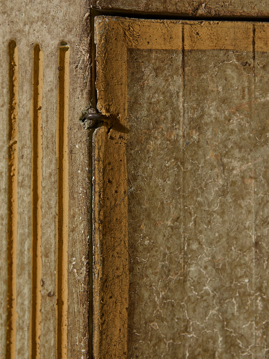 Pair of original 19th century Venetian sideboards. Made of carved wood, these sideboards have recovered their original patina in soft green tones, typical of 19th-century Venetian furniture.