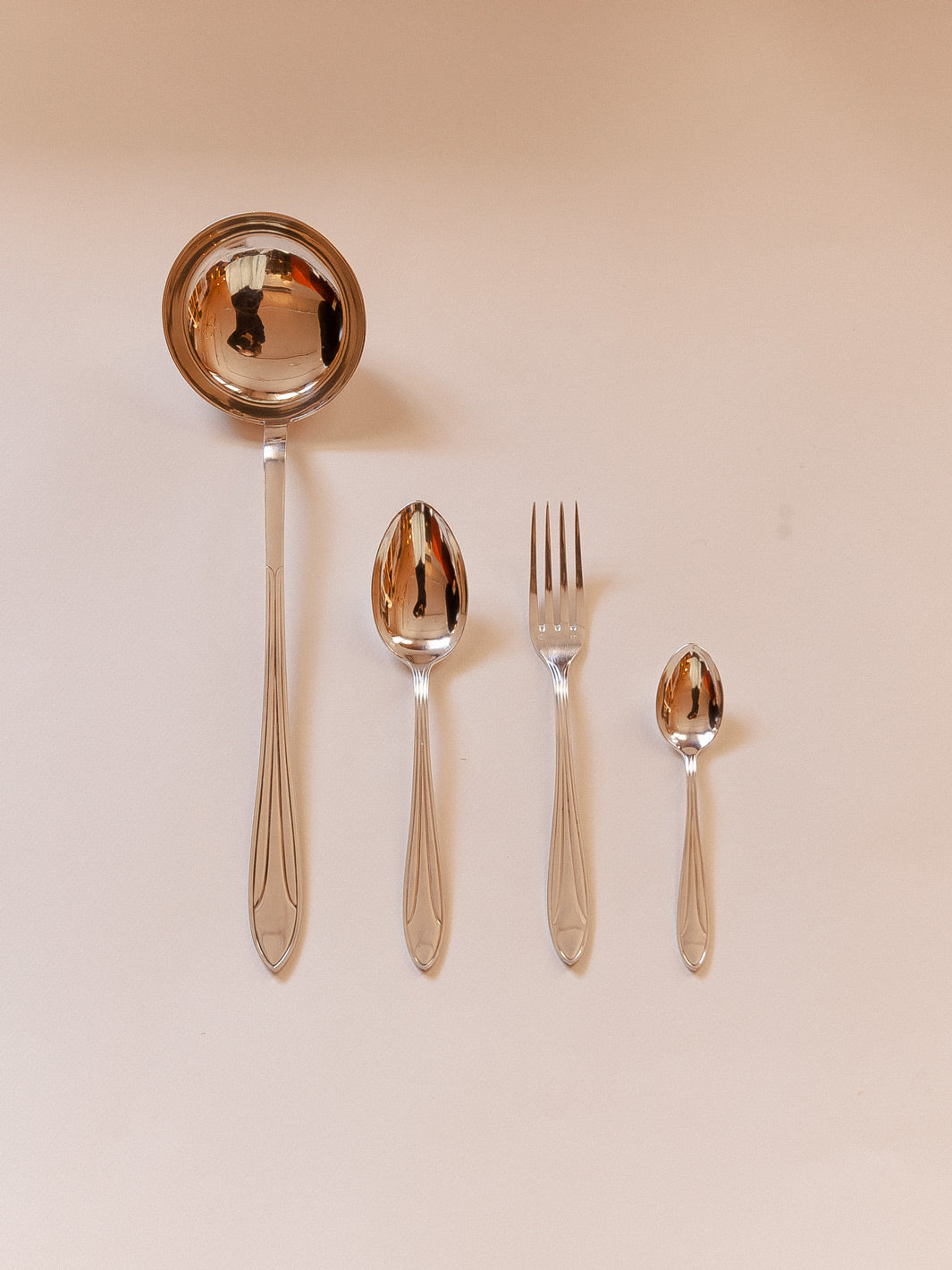 Between the 1930s and 1940s, silversmiths such as Christofle, Saint Médard, Boulanger and Ercui, among others, when they designed their cutlery in solid square silver, replicated the models, and offered the same designs in a silver-plated version. The tables look exquisite, with soul and history.