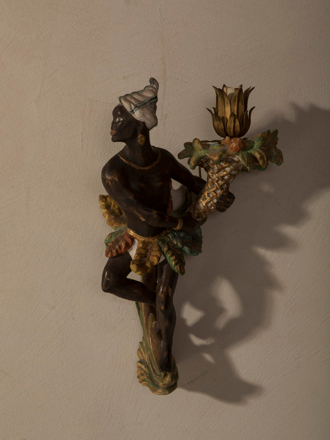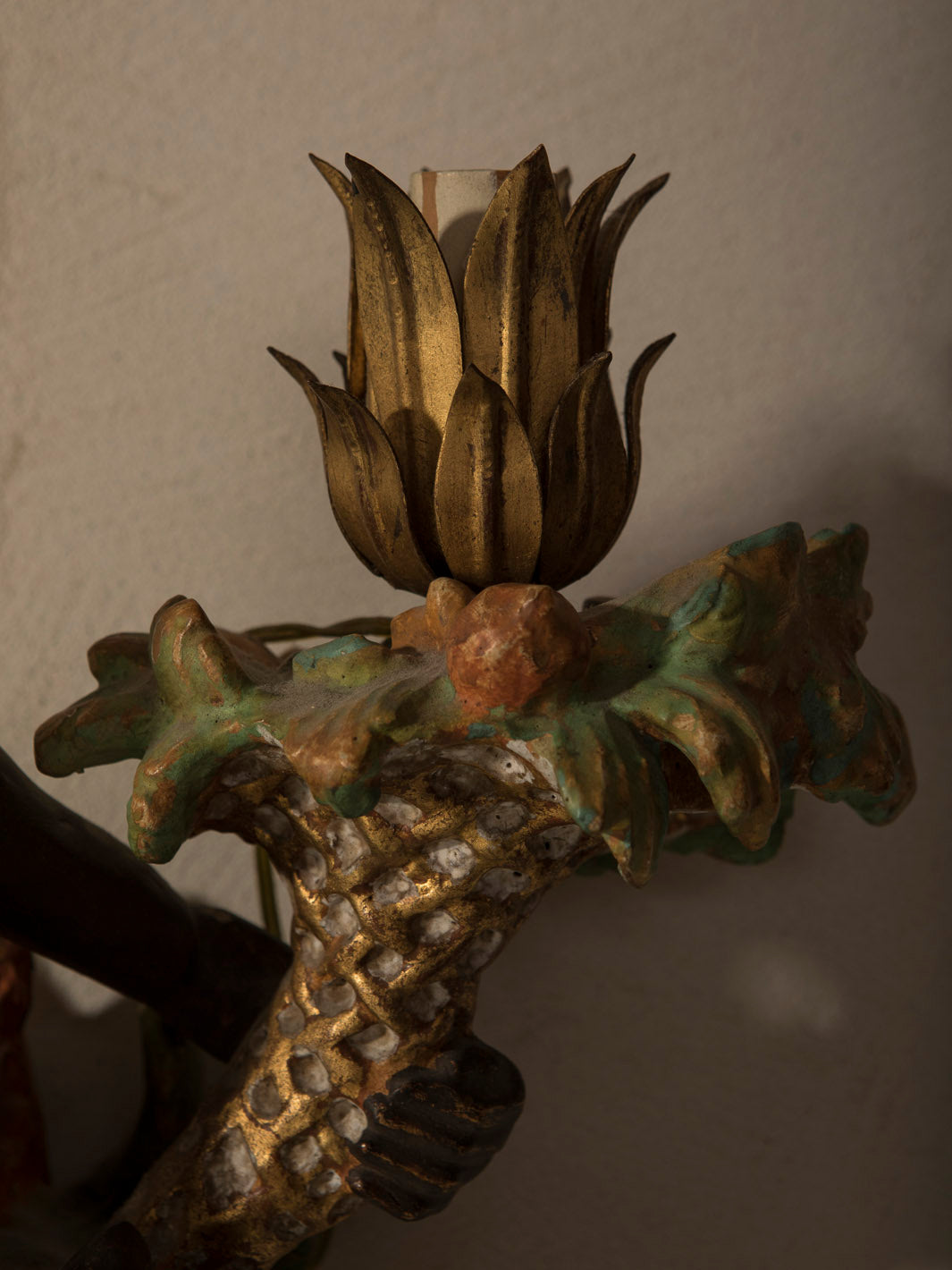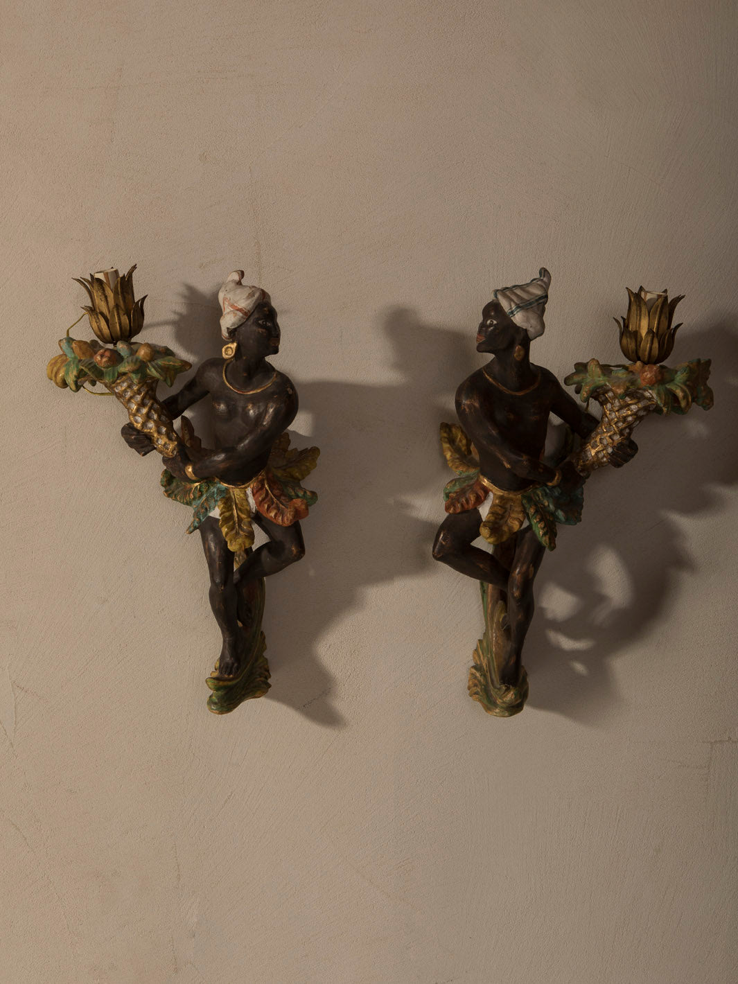 Pareja de apliques en madera policromada originales de Mónaco de los años 50.