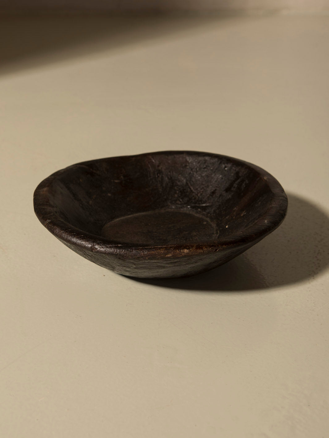 Black pocket emptying bowl in black patinated elm wood.