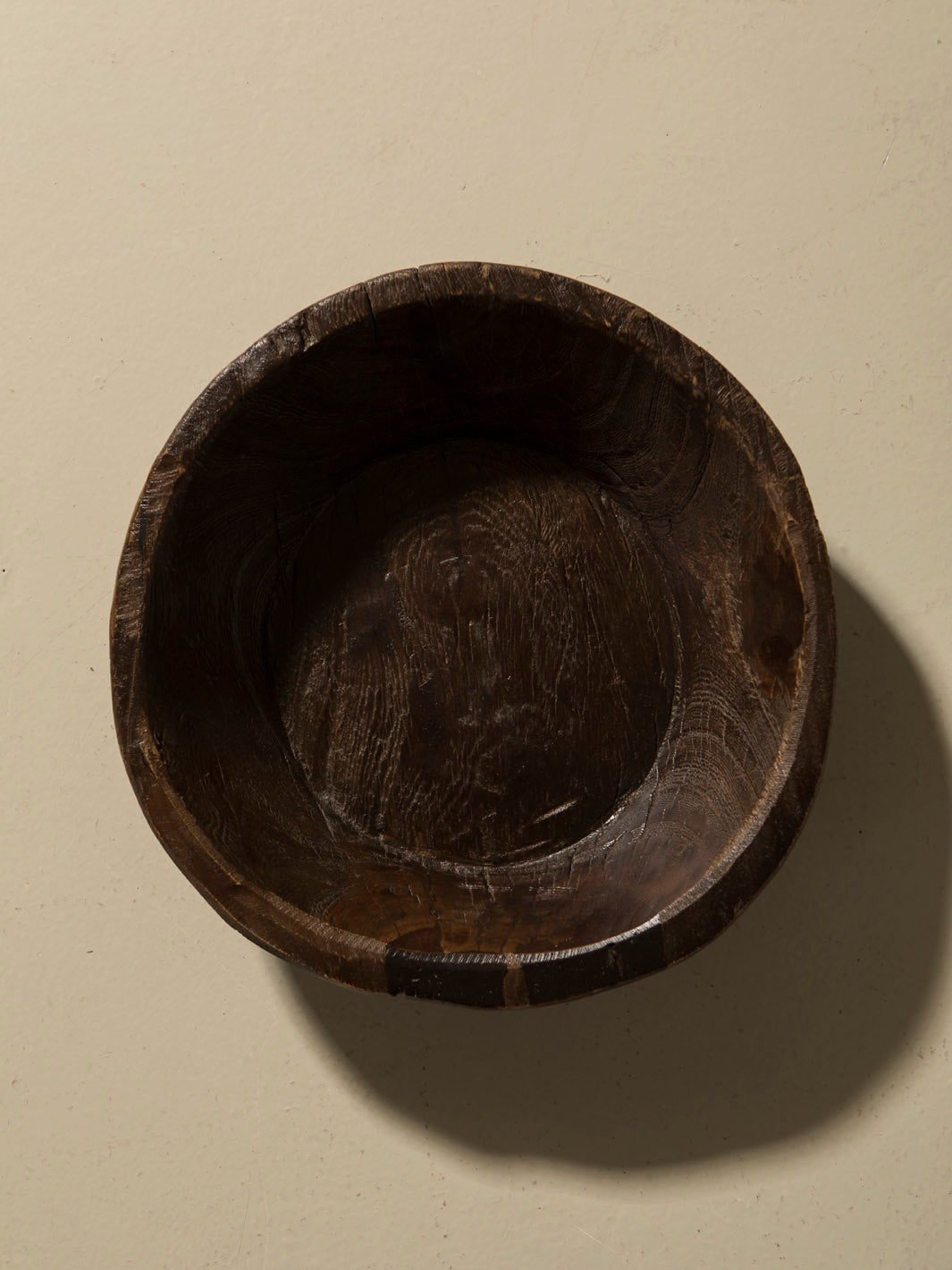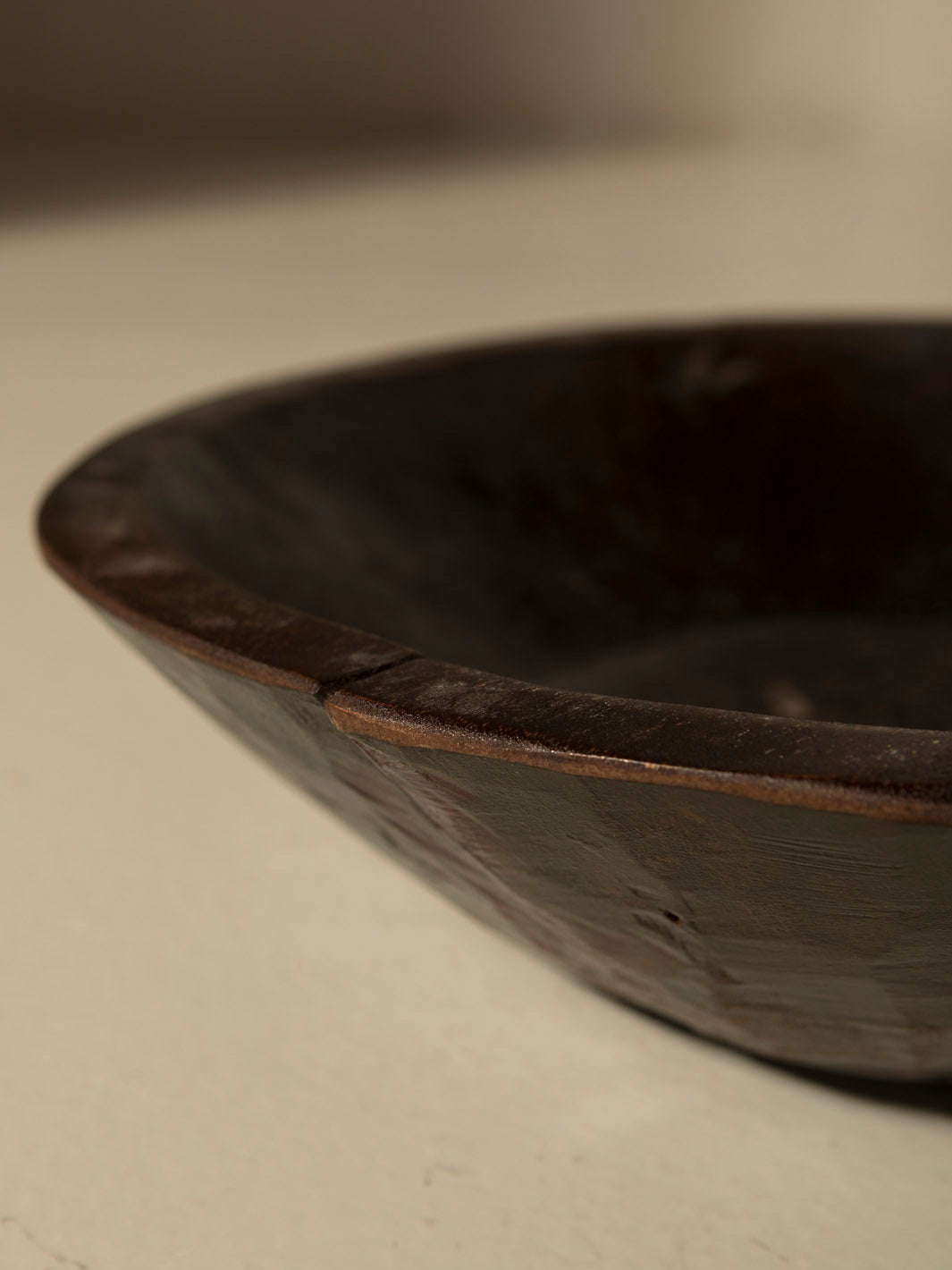 Black pocket emptying bowl in black patinated elm wood.