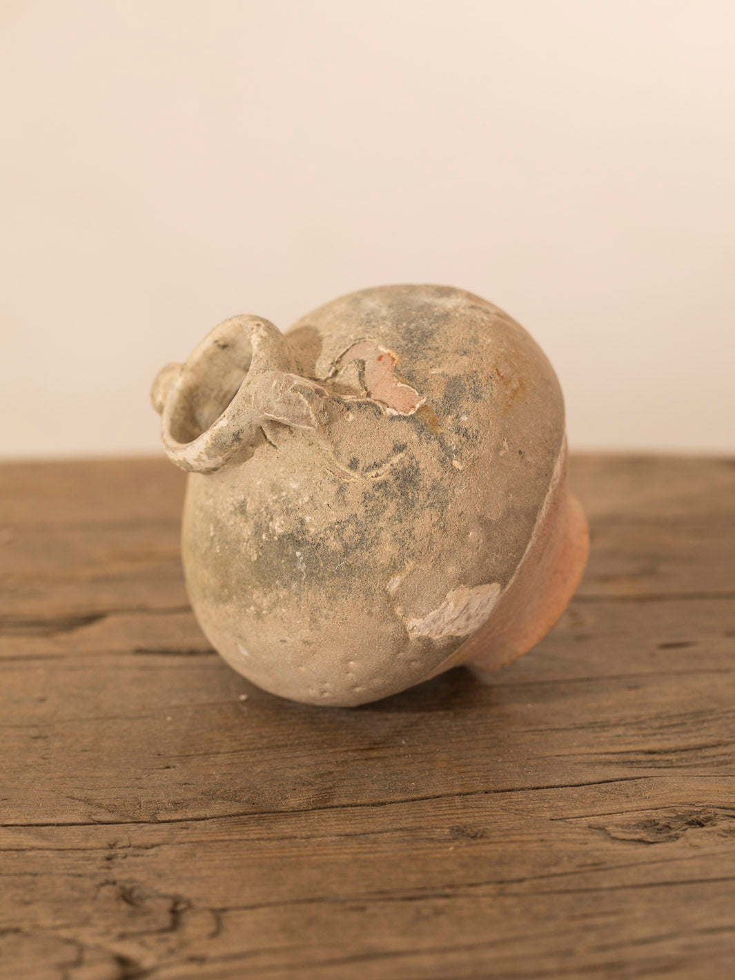 Original ceramic perfume bottle from the 17th century recovered from the bottom of the sea. The salt has erased the shine of its surface and its beauty is extraordinary for receiving miniature flowers or branches.