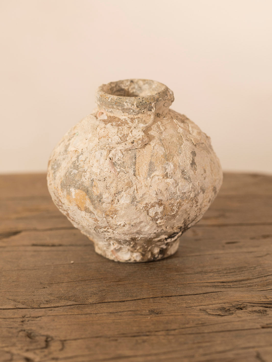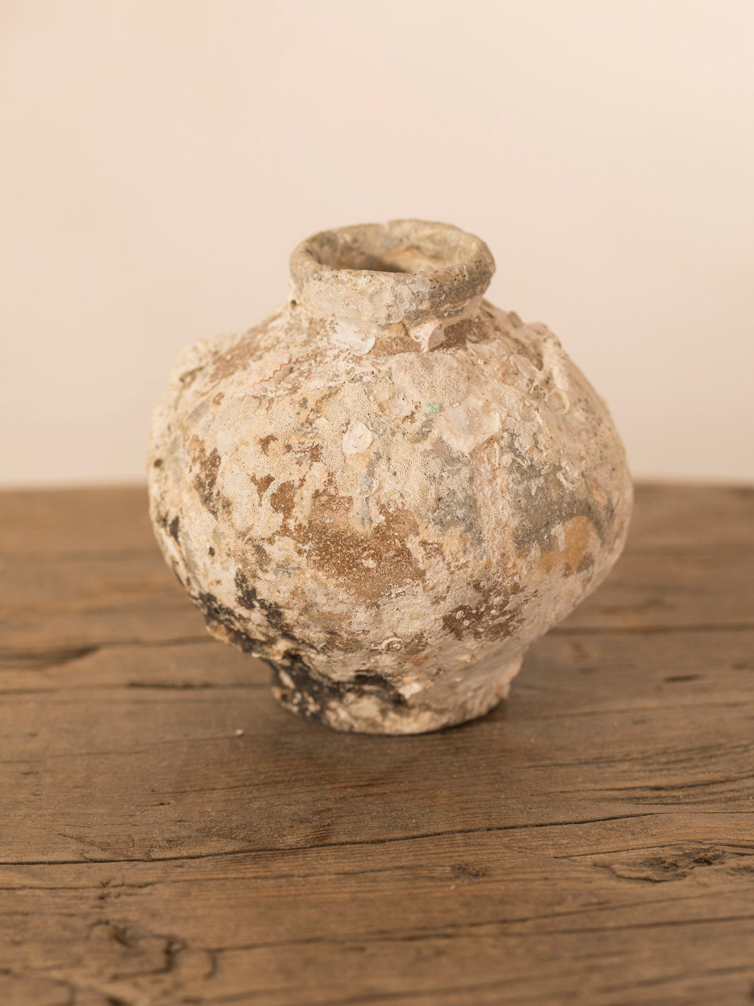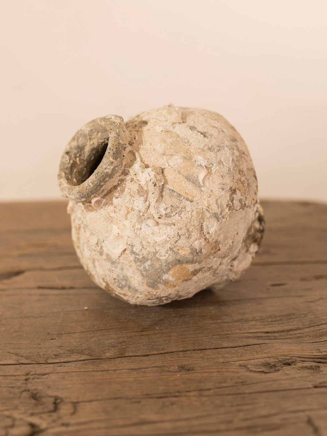 Original 17th century ceramic perfume bottle recovered from the bottom of the sea, the salt has erased the shine of its surface and its beauty is extraordinary for receiving miniature flowers or branches.