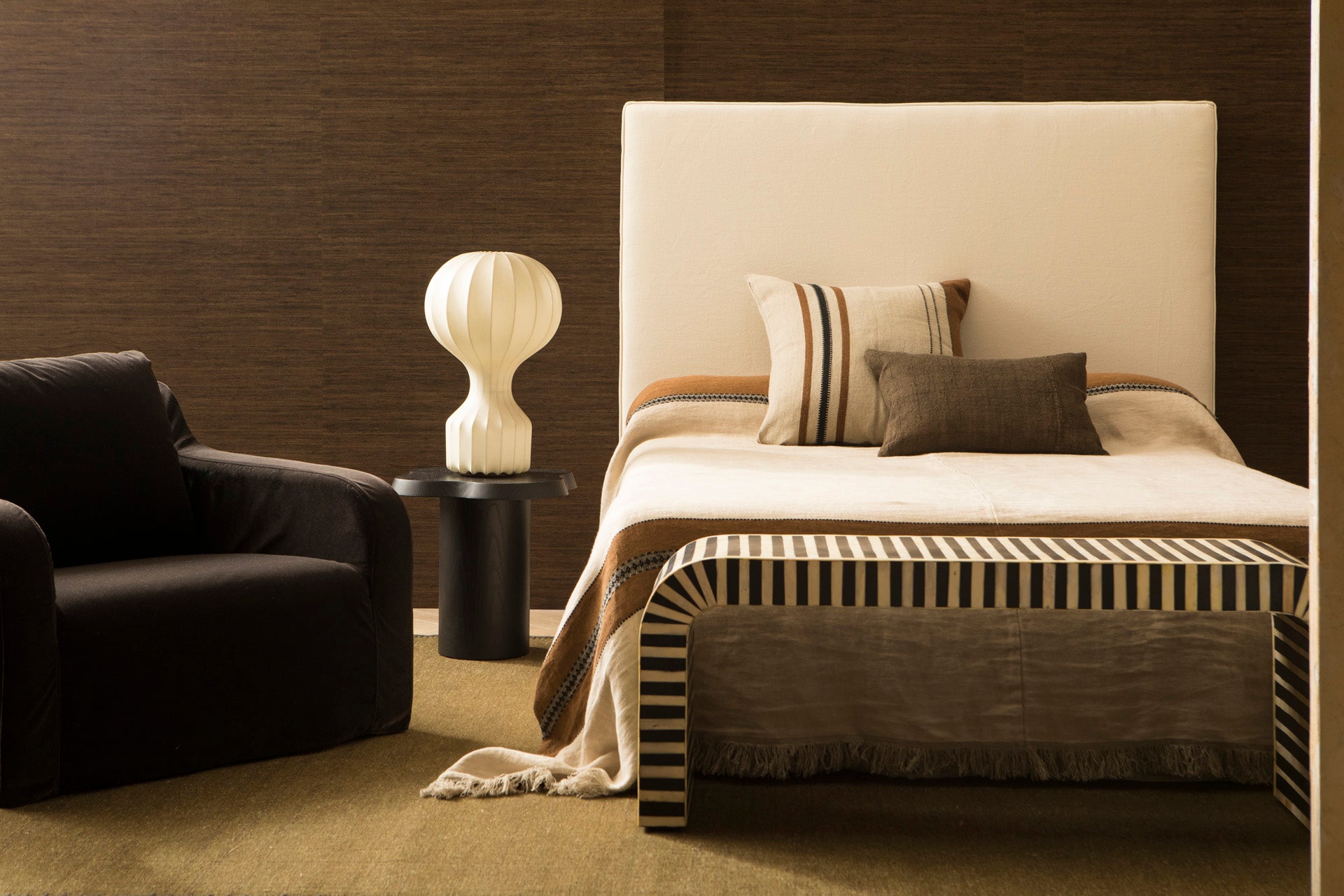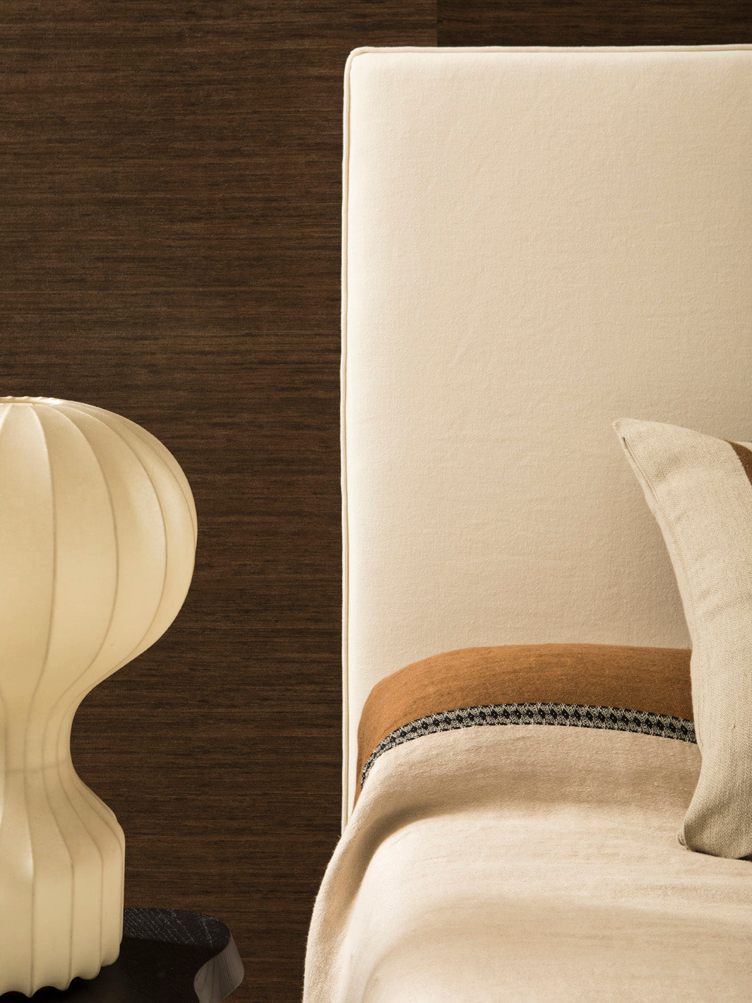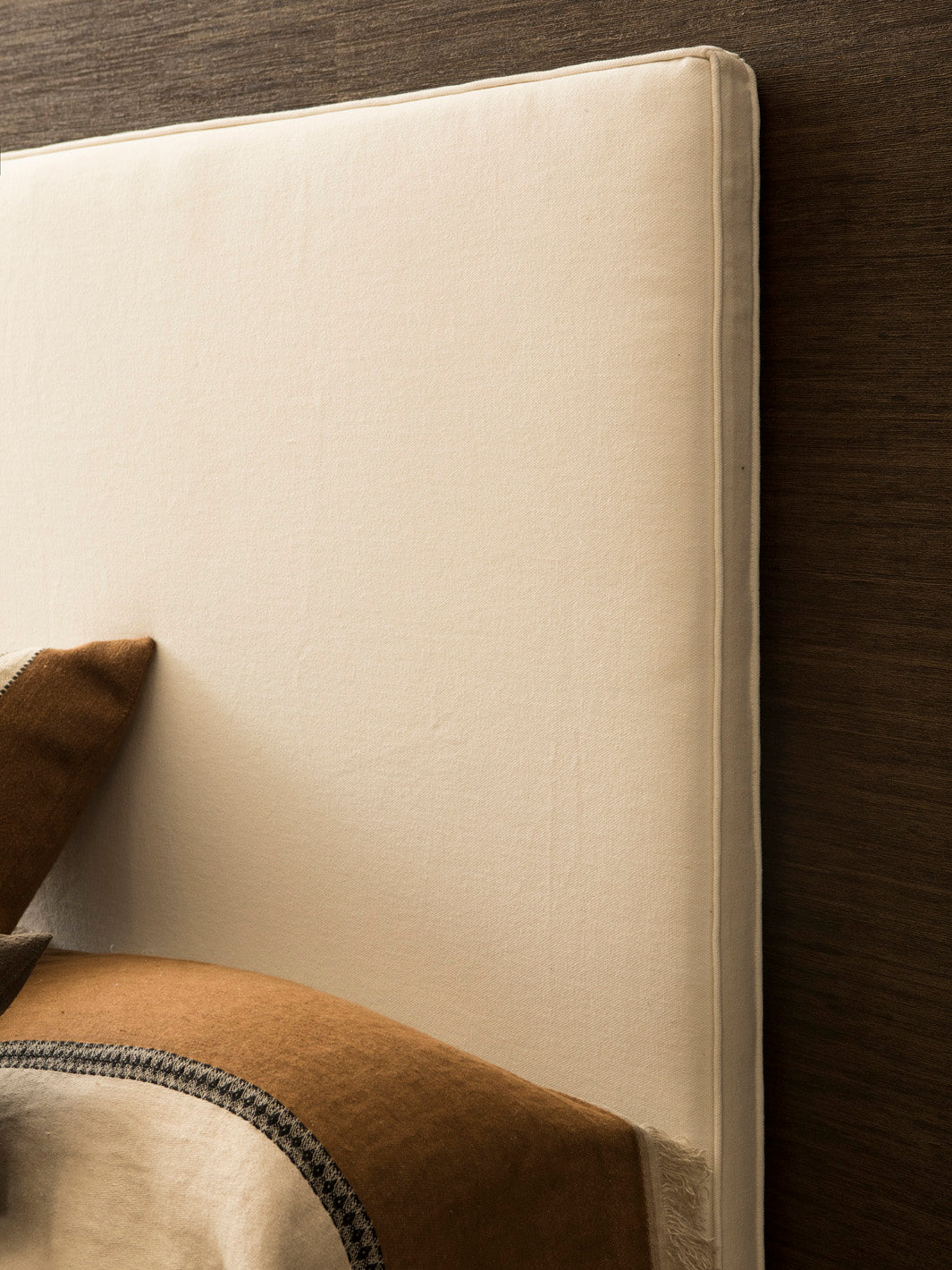 Upholstered in linen, its smooth surface and impeccable finish provide an air of serenity and balance, adapting naturally to contemporary and timeless spaces.