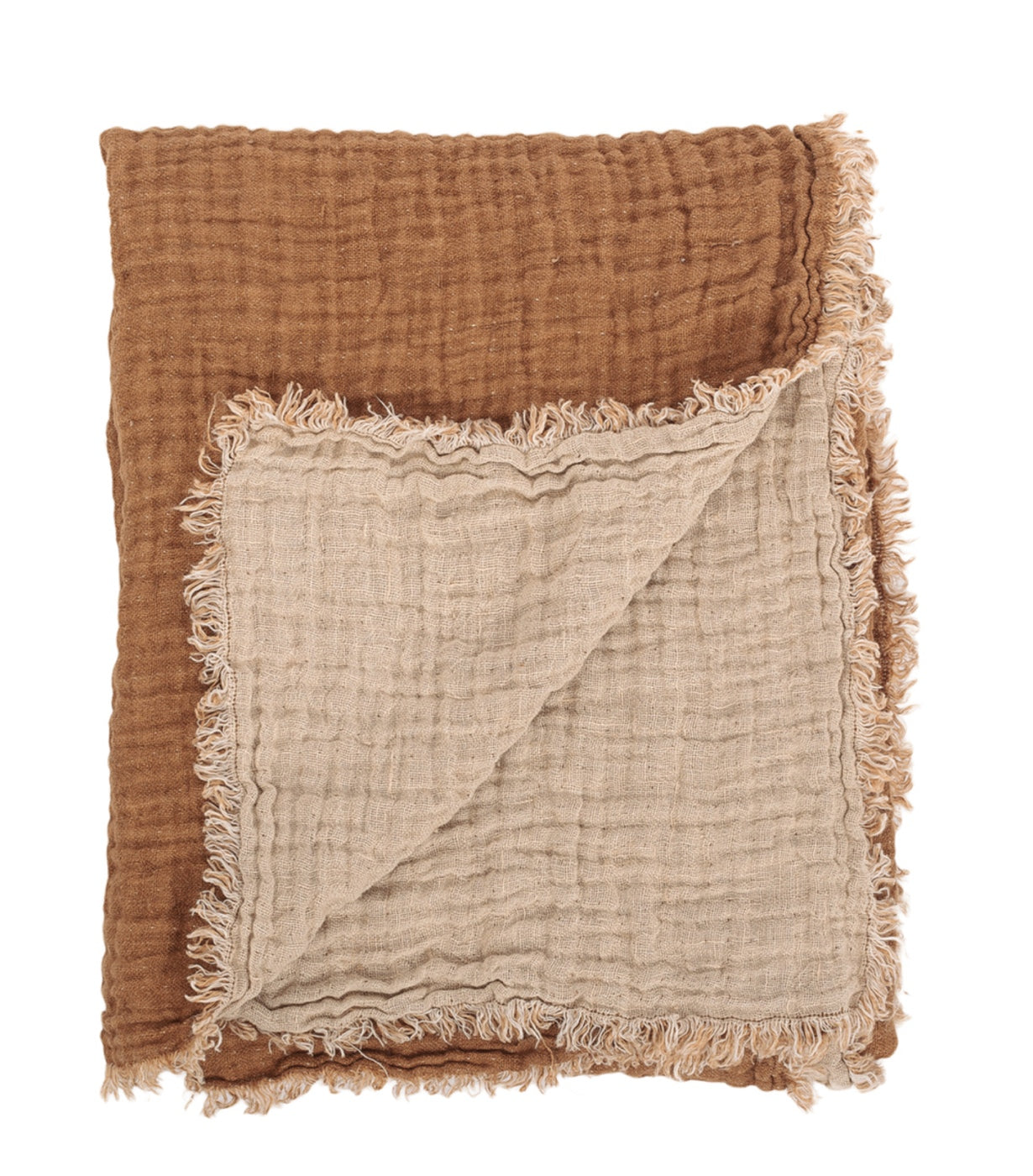 Reversible crumpled "gaufré" plaid in brown and beige. Combine it with coloured cushions and recreate an atmosphere where the clock stops and all you feel is the pleasure of rest.