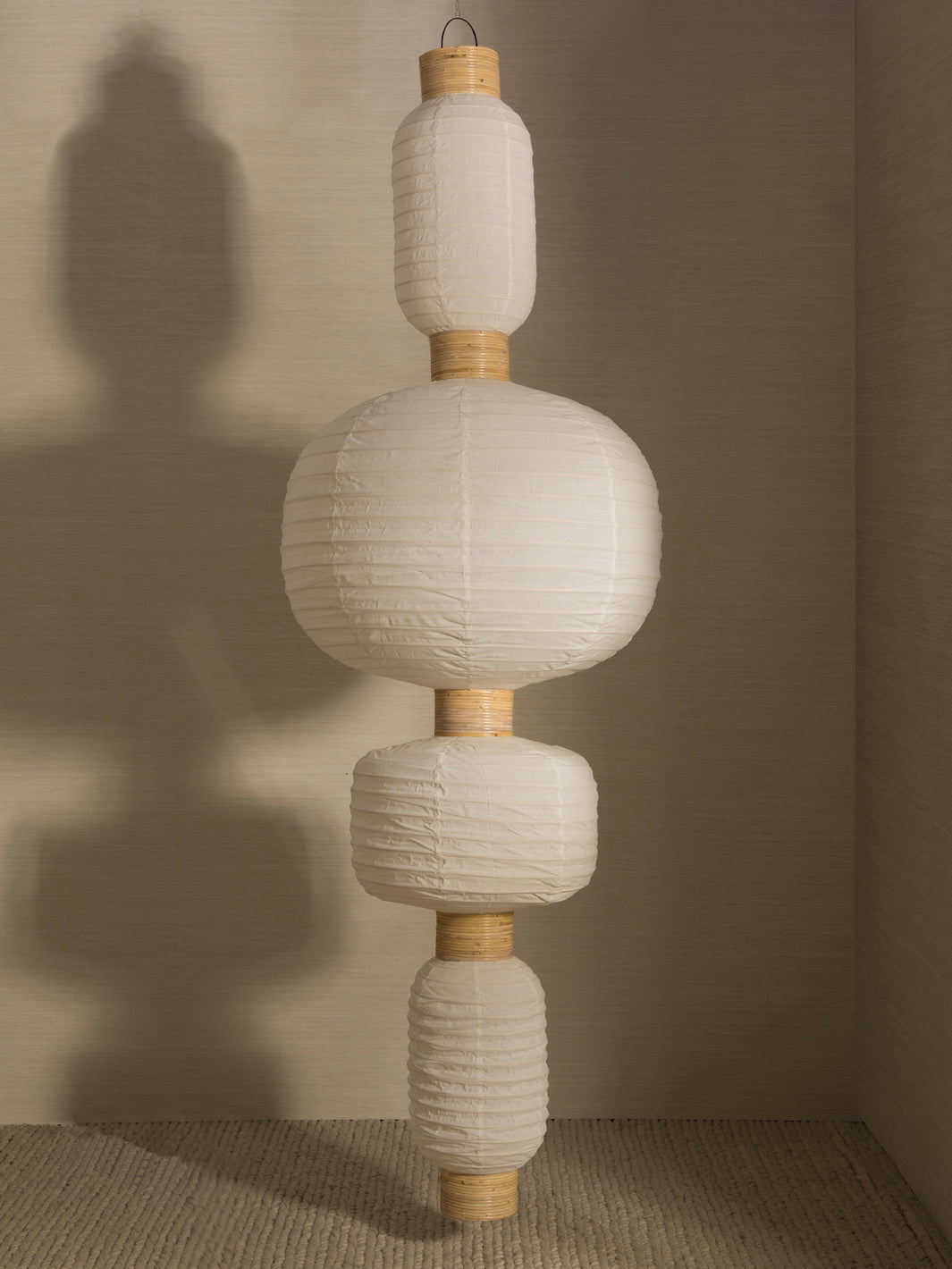 Magistrale lamp, rattan and natural fabric, 250 cm, 4 shades