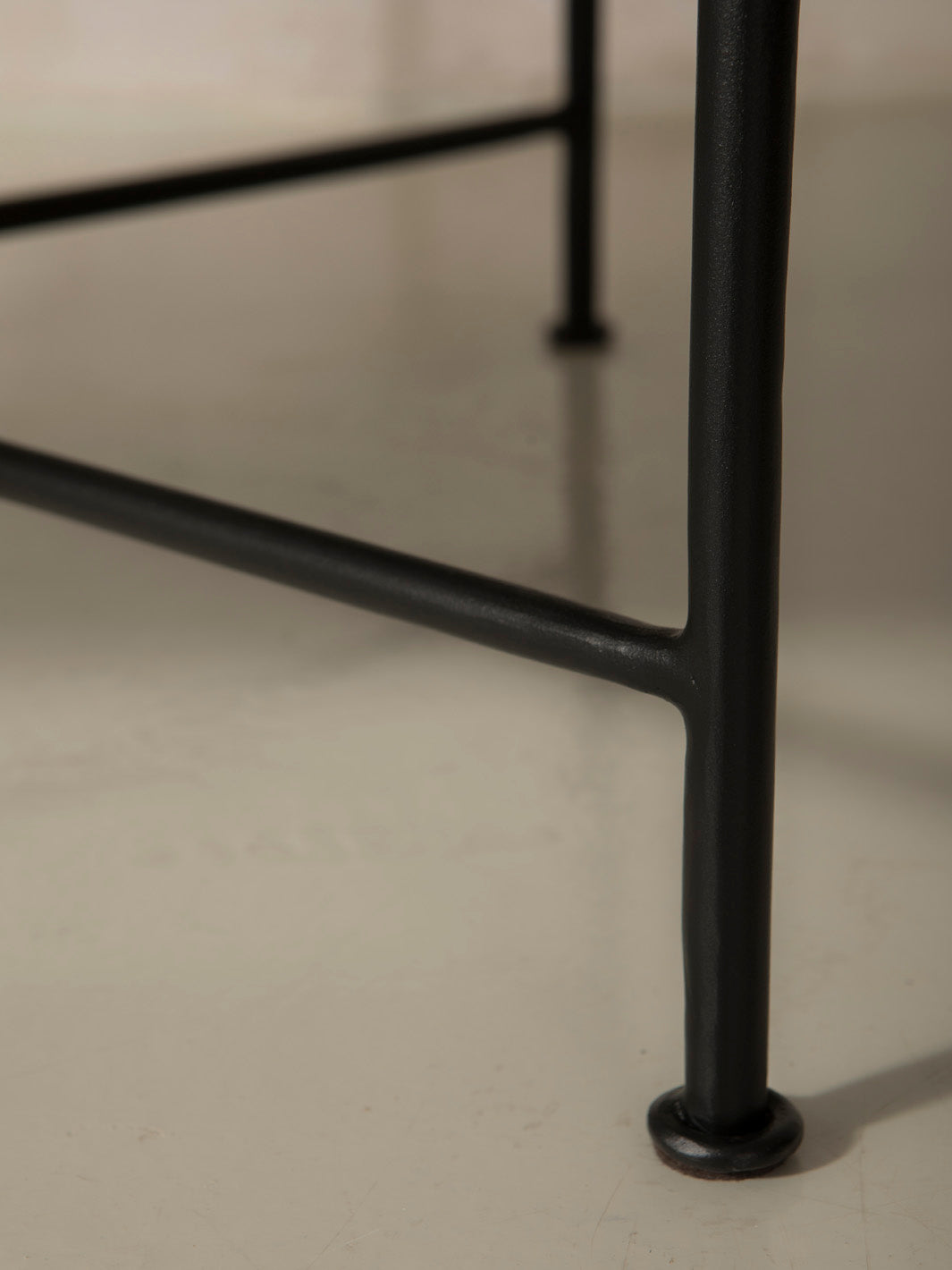 Our garden collection is 100% handcrafted, designed with the imperfections inherent in the process. This isn't technically outdoor furniture, but it can still thrive outdoors, as the iron is powder-coated and designed to withstand moderate outdoor exposure.