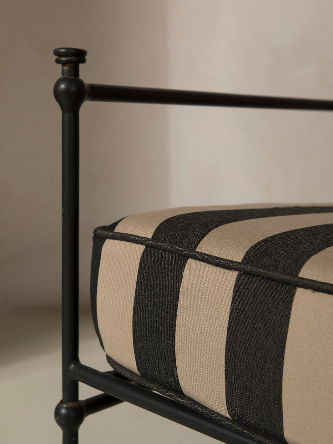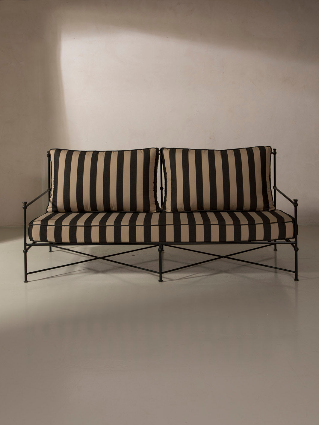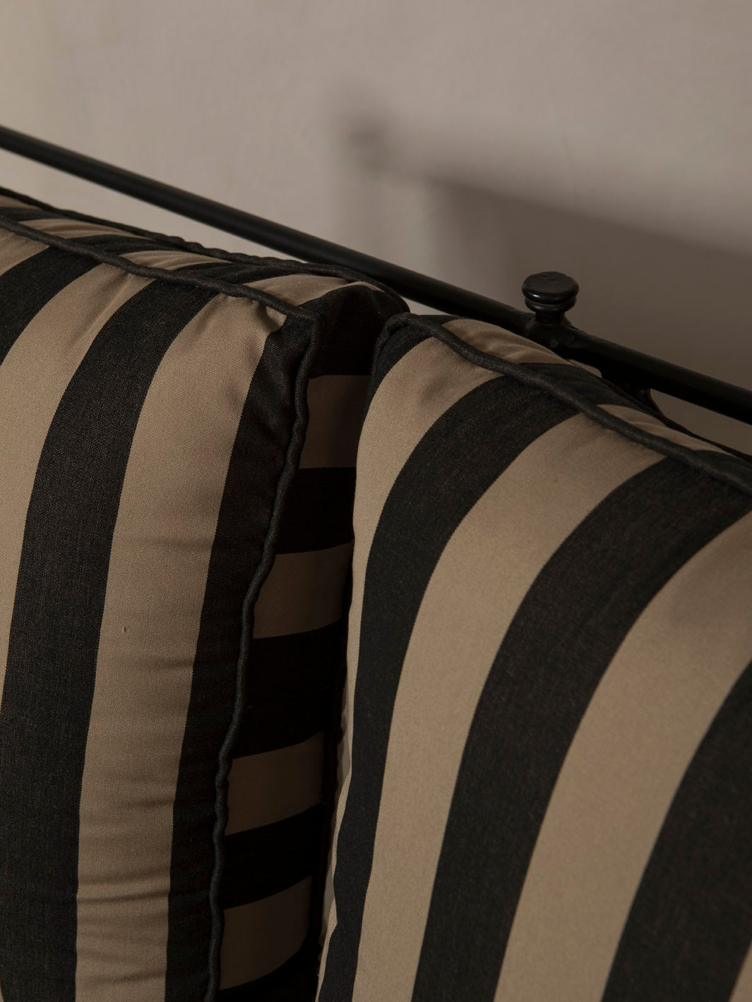 Medaillon sofa cover. Crafted from high-quality black and beige striped fabric, these covers add a sophisticated and timeless touch to any outdoor space. Every detail has been carefully designed to offer comfort without compromising on design.