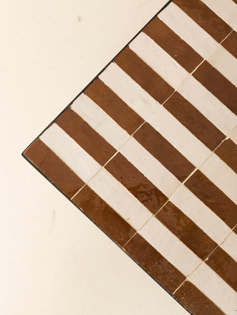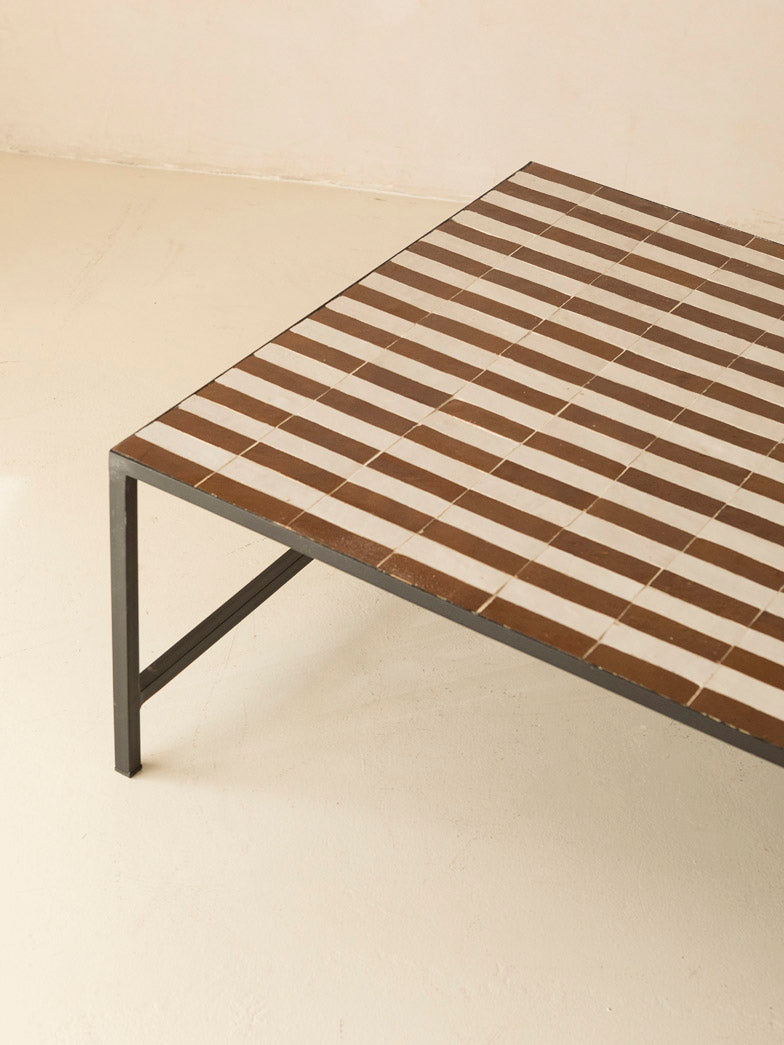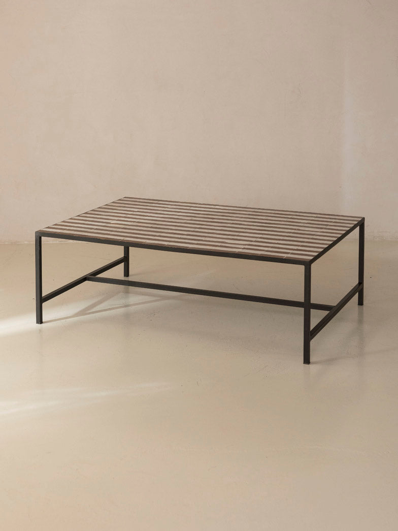 Zellige coffee table brown and white stripes 120x80x40cm