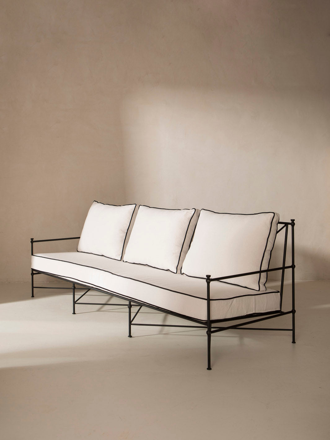 Our garden collection is 100% handcrafted, designed with the imperfections inherent in the process. This isn't technically outdoor furniture, but it can still thrive outdoors, as the iron is powder-coated and designed to withstand moderate outdoor exposure.