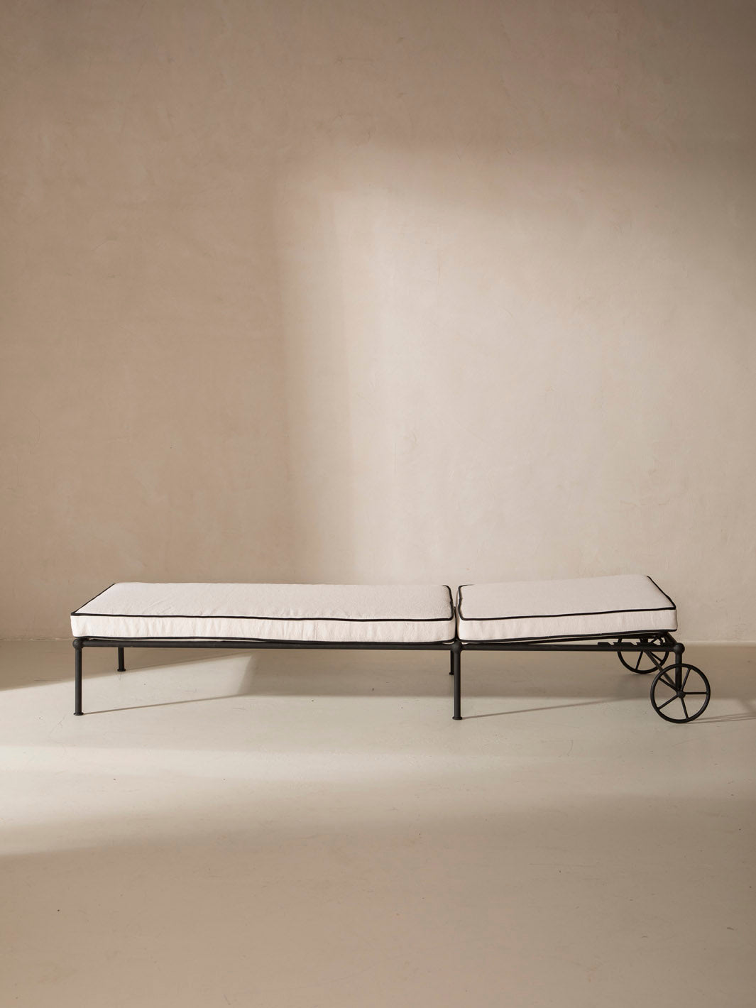 Our garden collection is 100% handcrafted, designed with the imperfections inherent in the process. This isn't technically outdoor furniture, but it can still thrive outdoors, as the iron is powder-coated and designed to withstand moderate outdoor exposure.