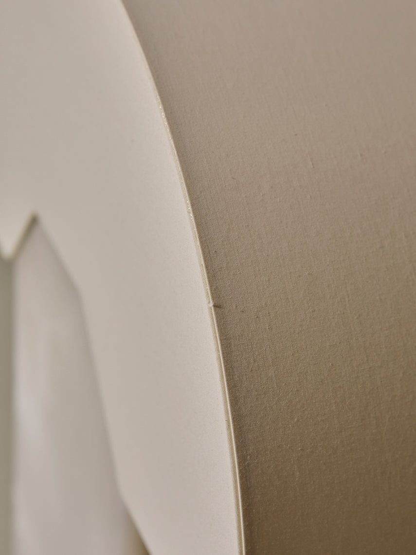 Edna table lamp by the Simone & Marcel design studio. Alabaster base and raw cotton shade. Handmade.
