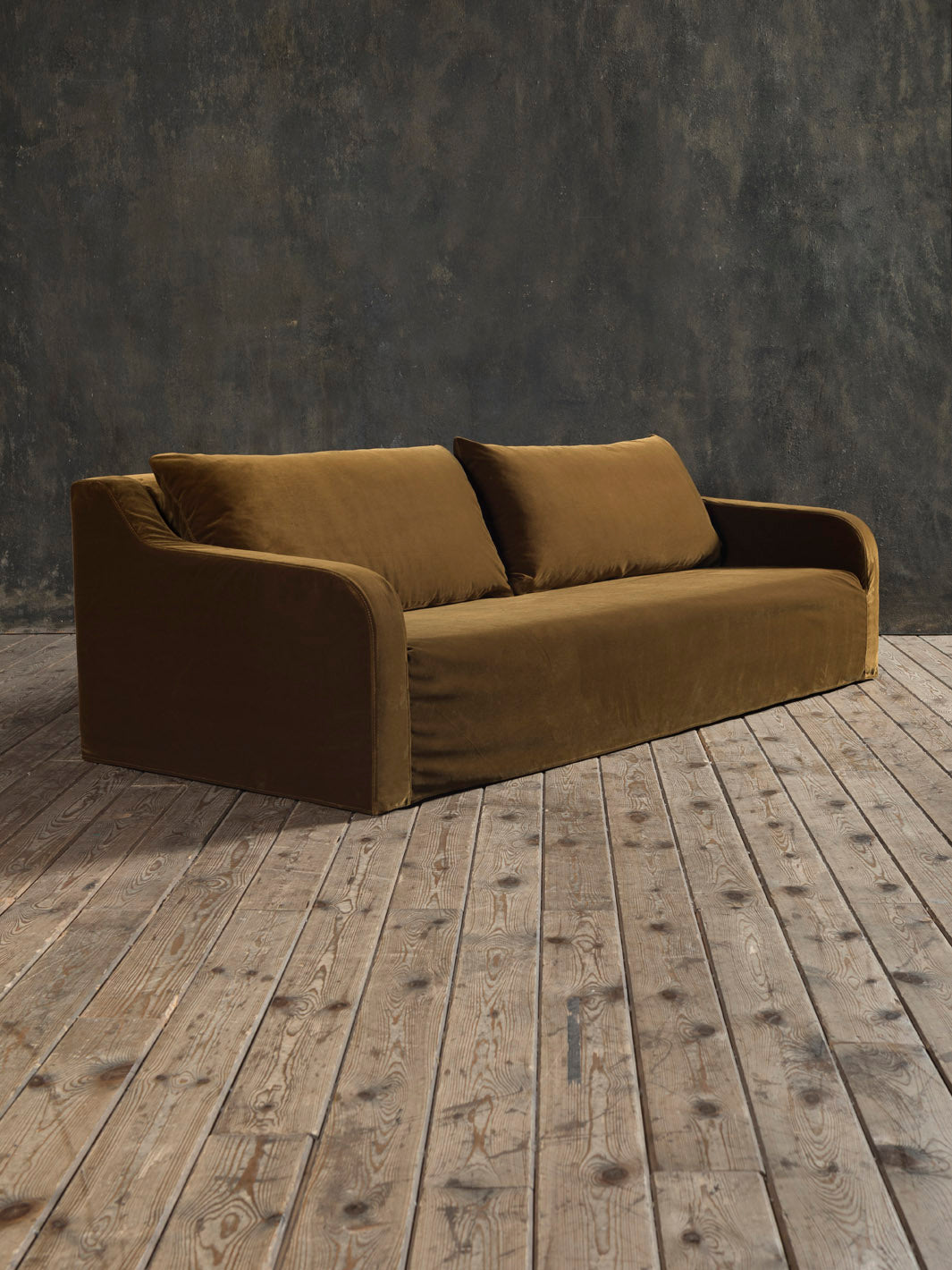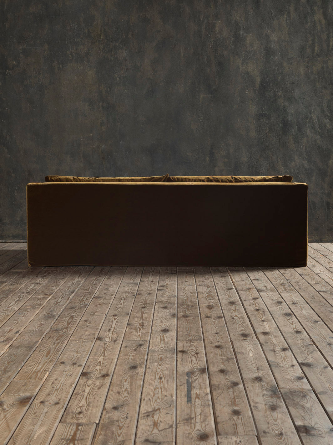 Inspired by the light of the Portuguese Alentejo, the Comporta sofa was created to make rest the greatest pleasure, and to escape into a comfortable, practical and visually light sofa. Crafted in military green velvet.