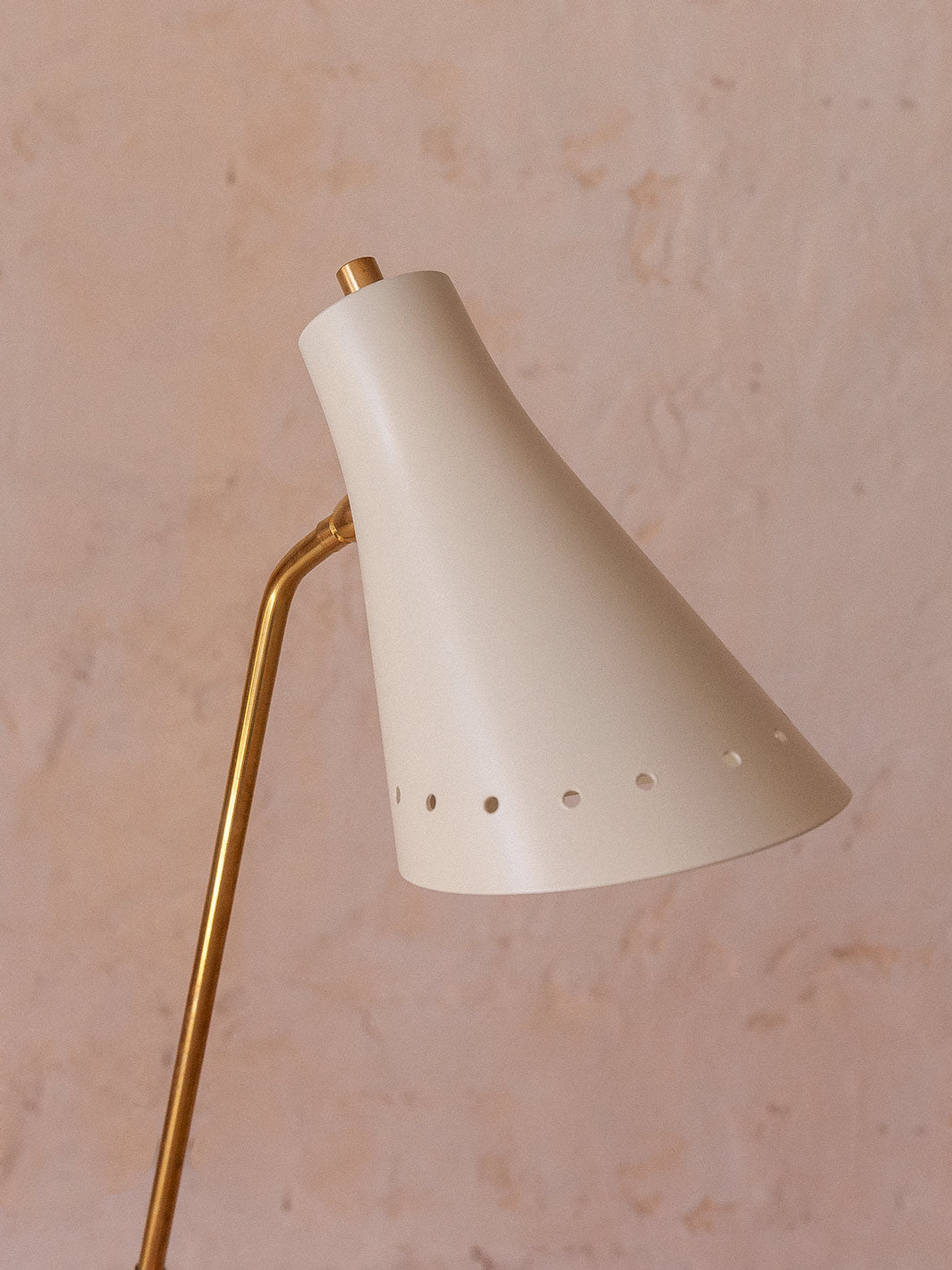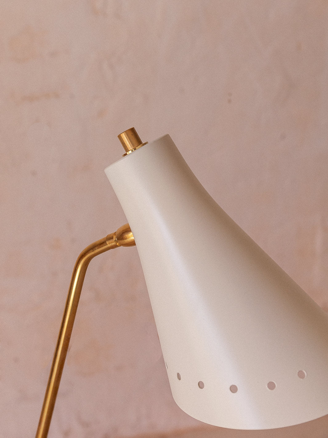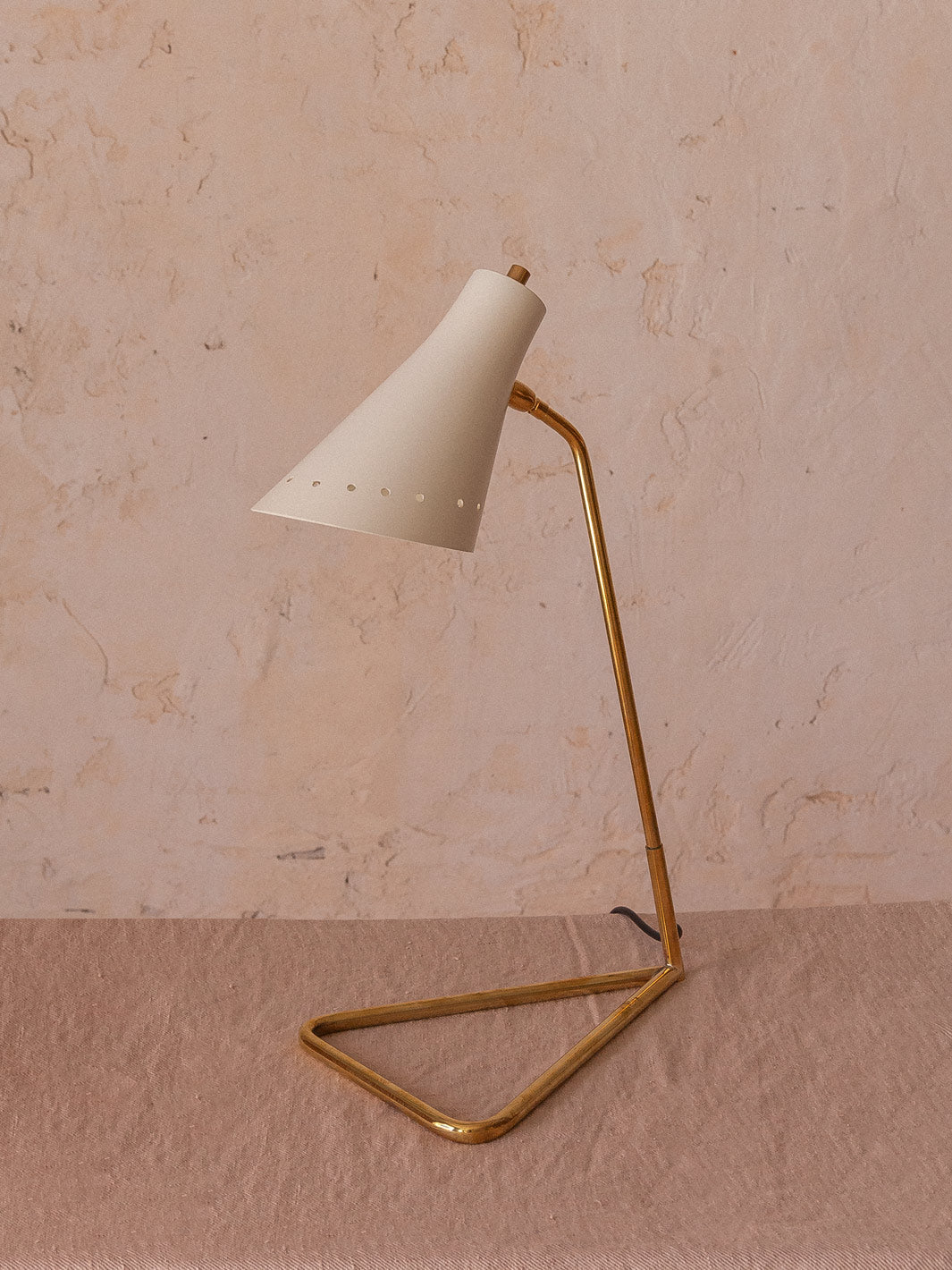 Table lamp with brass base with white enamelled lampshade, original from Italy.