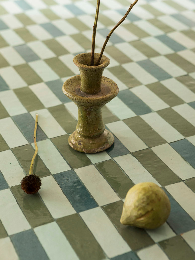 Dining table in Zellige and hammered powder-coated iron. The authenticity of Zellige is unmistakable, from its unique textures to its vibrant colors. Each tile is a part of Moroccan history, crafted with techniques passed down from generation to generation since the 8th century. Our hammered iron collection showcases the various combinations of Zellige to make terraces and gardens tell their own story.