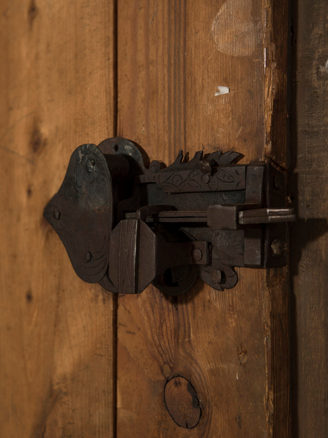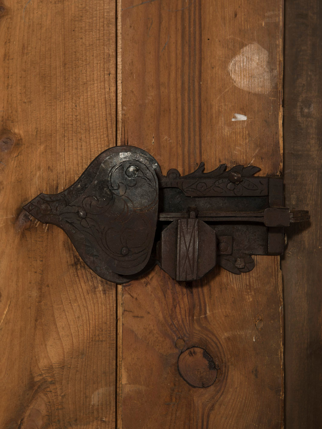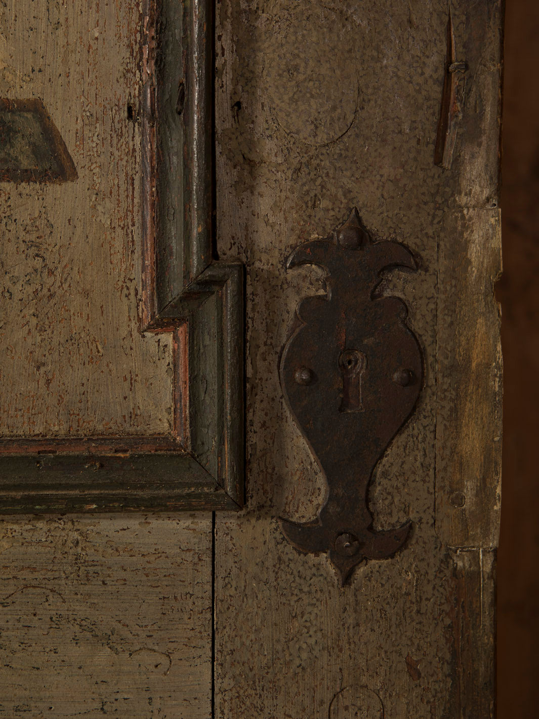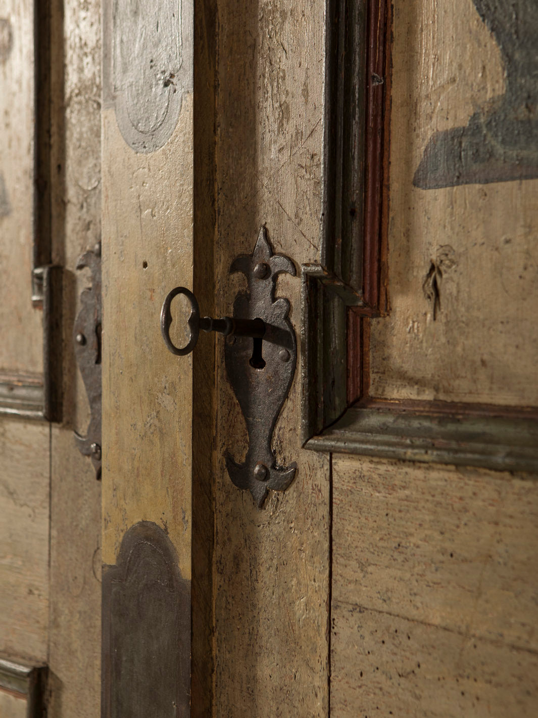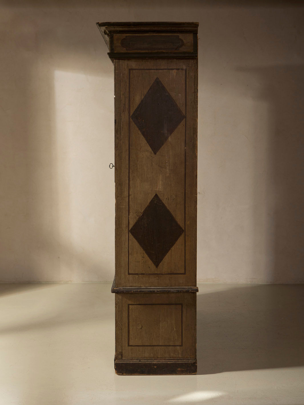 Armario Alsaciano trabajado en madera de abeto patinada original del siglo XIX. Ornamentación floral y geométrica pintada a mano.