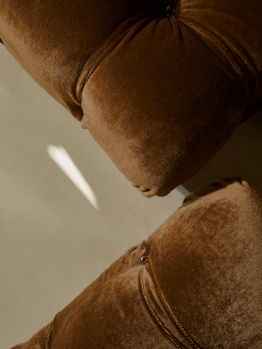 Designed by Mario Bellini and originally from Italy in the 1970s, it was one of the first editions for C&B. "Camaleonda is a name I invented in 1970 by combining two words: the first is the name of an extraordinary animal, the chameleon (camaleonte in Italian), which can adapt to its environment, and the word "onda" means wave, the curve of the sea and the desert. Both words describe the shape and function of this sofa," explains Mario Bellini.