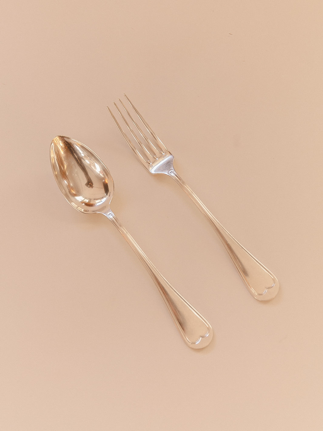 Cubertería francesa de plata metal argenté modelo clásico forma corazón para 12 personas.