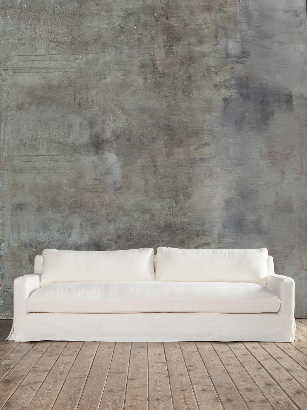 Sofá de inspiración Belga en lino desenfundable de color marfil. Es confortable y ergonómico, te atrapará en su mullida estructura.